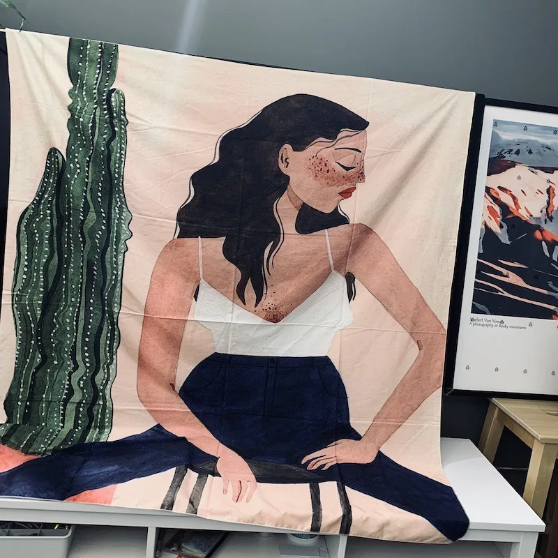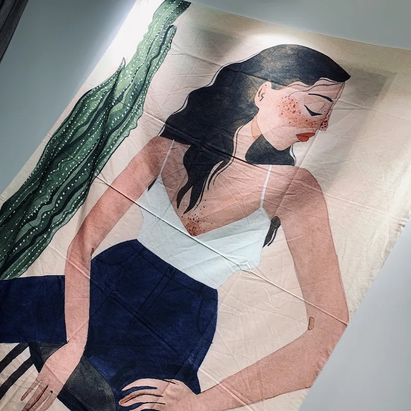 Можно использовать в качестве пляжного коврика, коврика для йоги, скатерти и в качестве гобелена или настенного подвешивания.