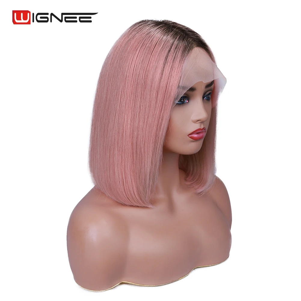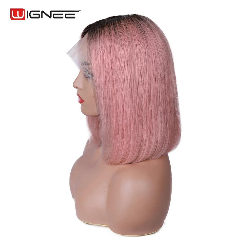 Wignee Ombre Человеческие волосы, розовые/серые/светлые волосы, фронтальная часть, парики для чернокожих женщин, бесклеевые короткие прямые волосы