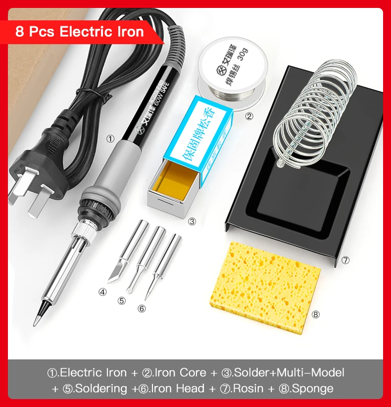 60 Вт светильник: 60 Вт светильник ing электрический утюг + 7 предметов аксессуаров + сумка для хранения