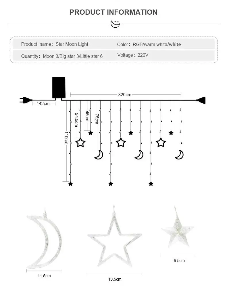 Название светодиодный ные занавески в виде луны и звезд