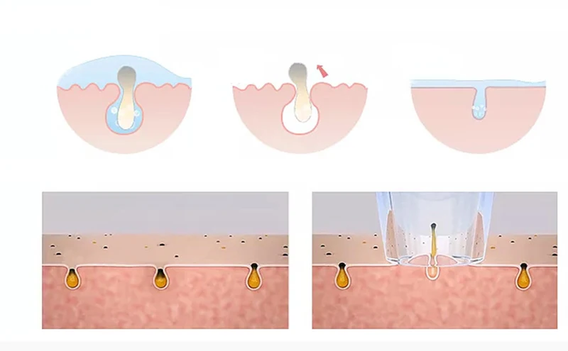 Функция вакуума очищает грязные поры через всасывание и увеличивает кровообращение в коже