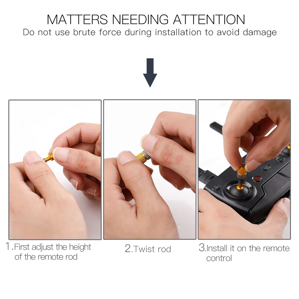 1. Замена thumbstick подойдет mavic mini,mavic 2 ,Mavic air, идеально подходит для замены предупреждающих или поврежденных ручек большого пальца. 2. При максимально широкой ширине эта палка для большого пальца удовлетворяет потребности тех, кто заинтересован в мультироторном квадрокоптере. 3. Чем дольше Длина рокера, тем более чувствительный контроль 4. Процесс анодного окисления окраски 5. Противоскользящий дизайн 6. Материал: алюминиевый сплав 7. Регулируемая длина: 0-4,5 мм 8. Цвет: Золотой 9. Съемный дизайн: удобно использовать и хранить (вы можете вращать и прикрепить их к пульту дистанционного управления во время использования, и положить их в специальный паз, когда зажимы мобильного устройства разворачиваются для хранения.)Посылка: