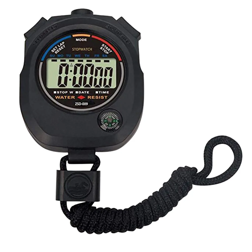 There is a strap on the stopwatch that can be wrapped around your hand or hung around your neck.