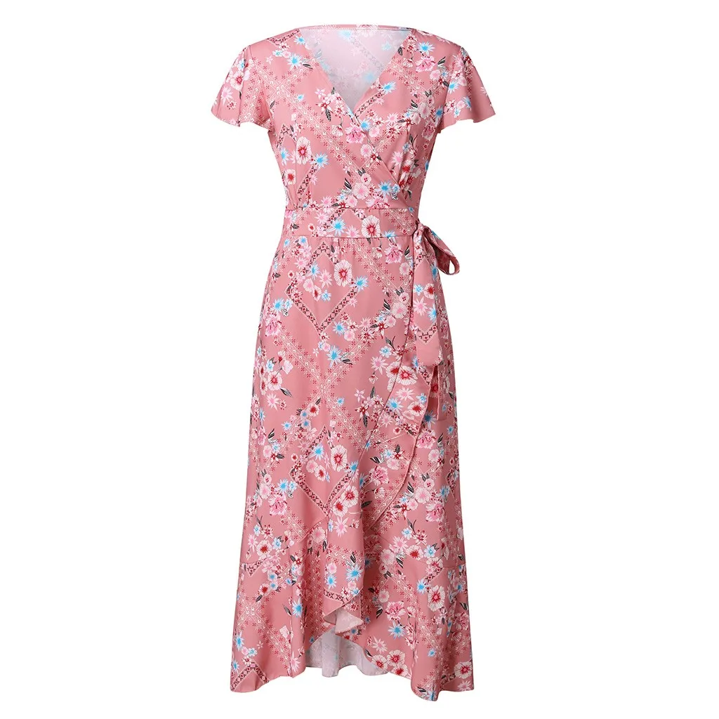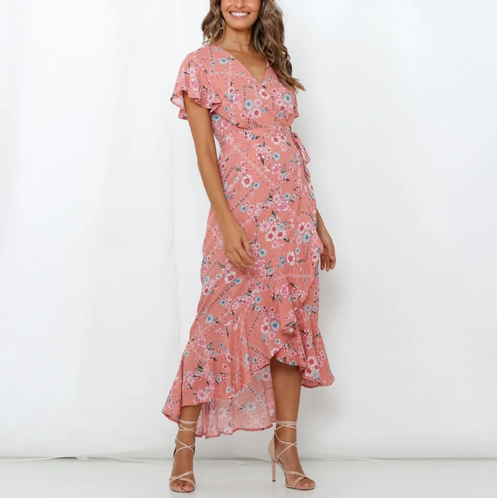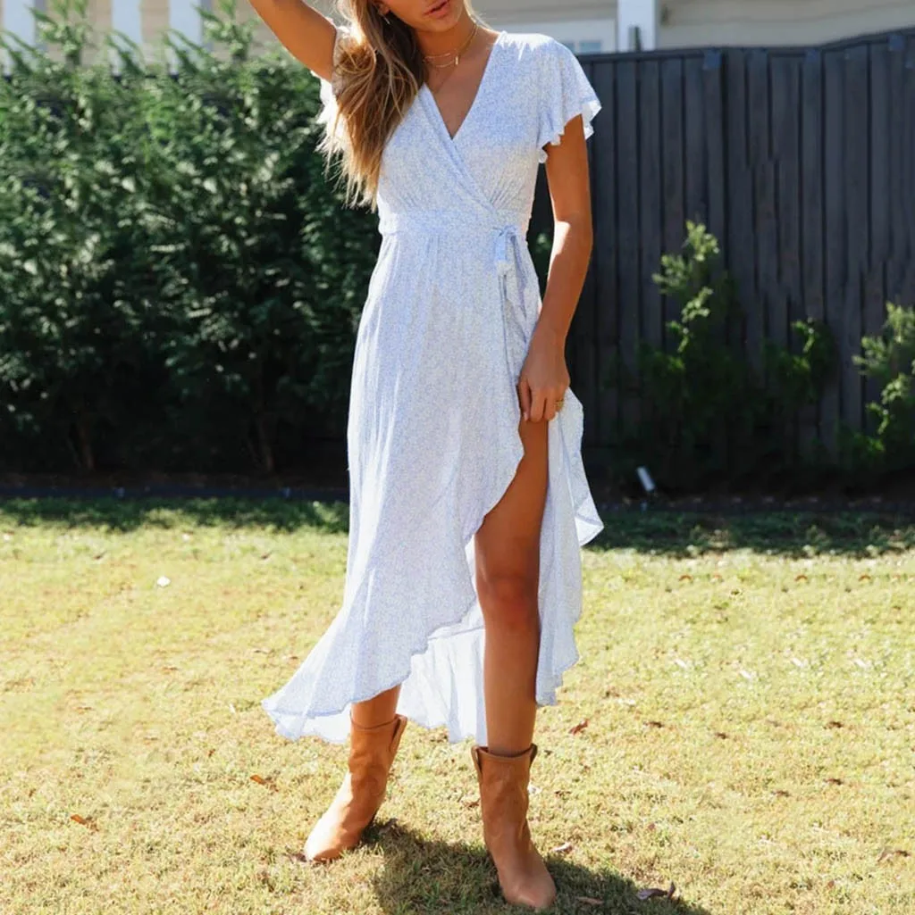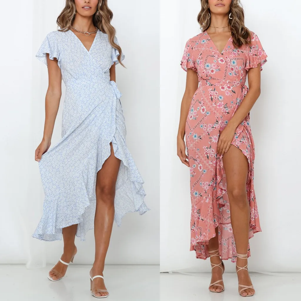 Женское сексуальное пляжное длинное платье без рукавов с v-образным вырезом и оборками