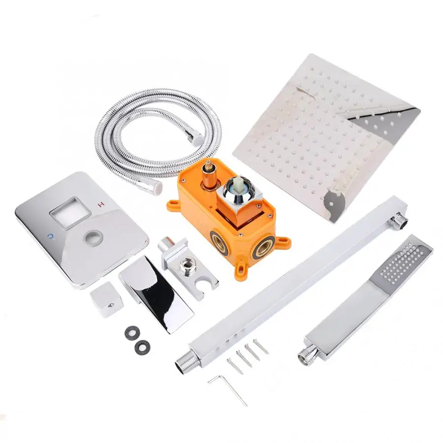 1. этот душевой набор включает в себя: Лейка для душа (8 дюймов 304 нержавеющая сталь), ручной душ (латунь), кронштейн (латунь), 59 дюймовый душевой шланг (нержавеющая сталь), 16 дюймов душевой кабины (нержавеющая сталь), душ, предохранительный клапан (латунь).