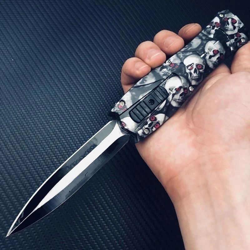 Стиль 1: черный нож Материал лезвия: 5Cr13 Уровень защиты: 57HRC Полная длина: 22 см Длина лезвия: 9 см Толщина лезвия: 0,28 см Ширина лезвия: 2,6 см Длина хвостовика: 11 см Покрытие: titanium литий-ионный Вес: 120 г Стиль 2: нож с принтом Полная Длина: 15,5 см Длина лезвия: 6,8 см Длина стержня: 8,7 см Ширина лезвия: 1,8 см Толщина лезвия: 2,5 см Лезвие: 440C Уровень защиты: 57HRC Поверхность: 3D Рисунок хризантемы Ручка: стальной лист + алюминиевый лист Вес: 90 г Стиль 3: нож с черепом Полная длина: 23,5 см Длина лезвия: 9,3 см Толщина лезвия: 0,2 см Длина ручки: 14 см Уровень защиты: 58HRC Функция: обхват талии клип Открытие: с двойной окантовкой Тип: прямо