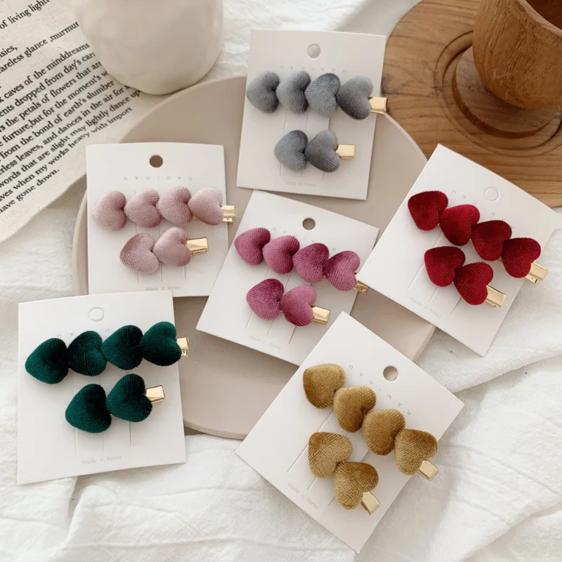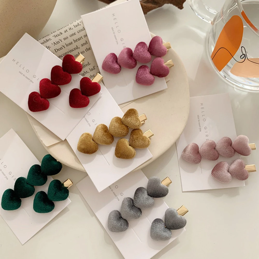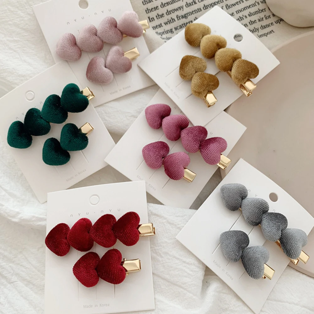 2 шт./компл., милые бархатные заколки в форме сердца, заколки для волос, заколки для волос, головные уборы, инструменты для укладки волос, аксессуары для женщин и девочек