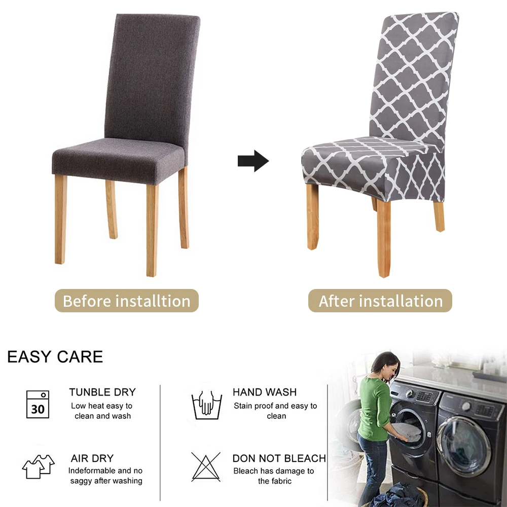 Отличная эластичность: чехлы для стульев сделаны из растягивающегося материала, быстро восстанавливает, защищает стул от пятен, царапин в повседневной жизни.