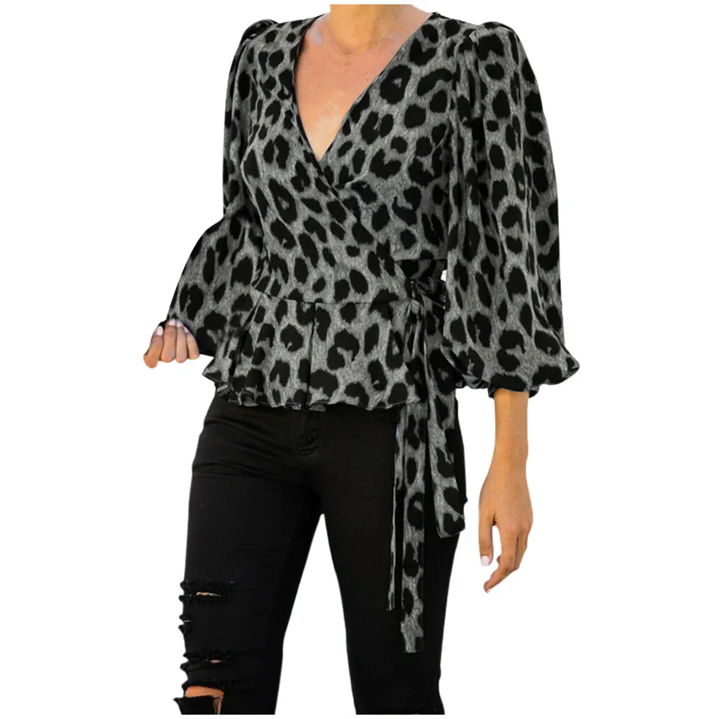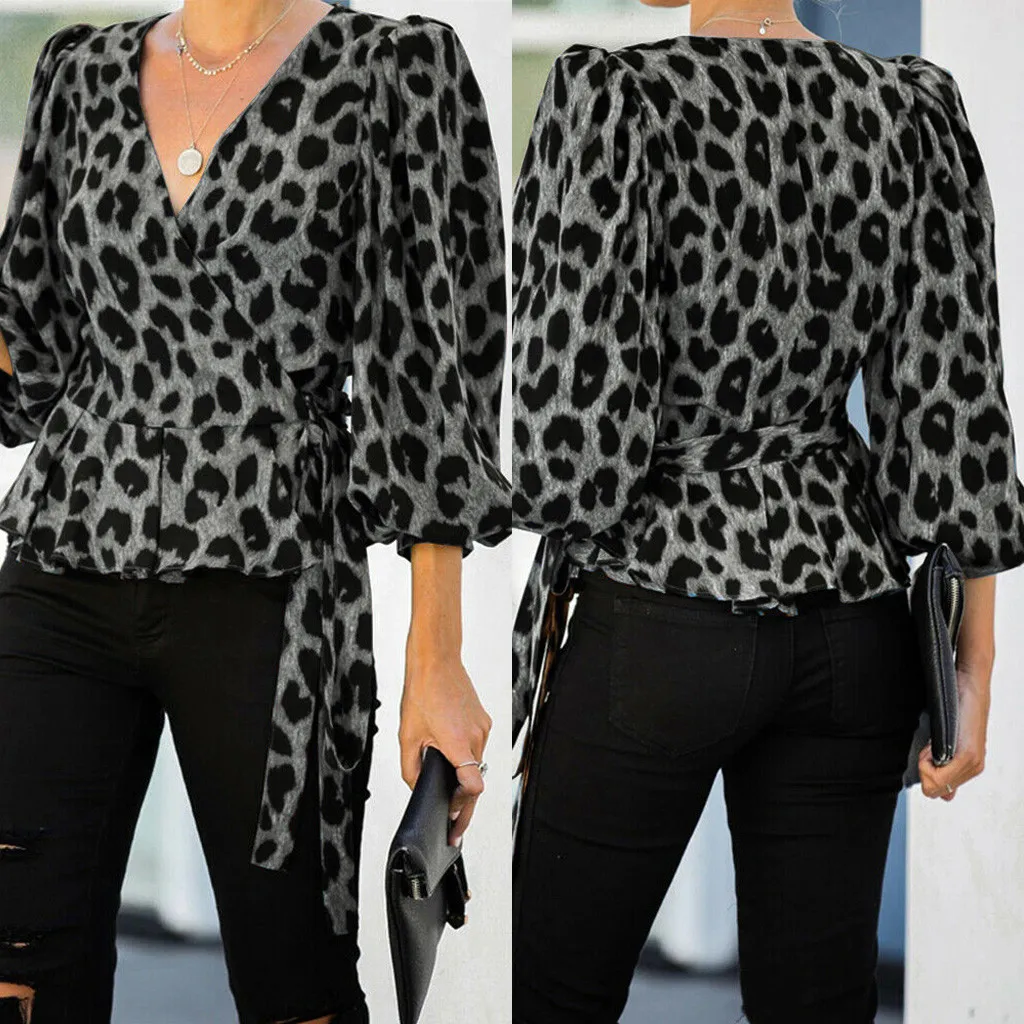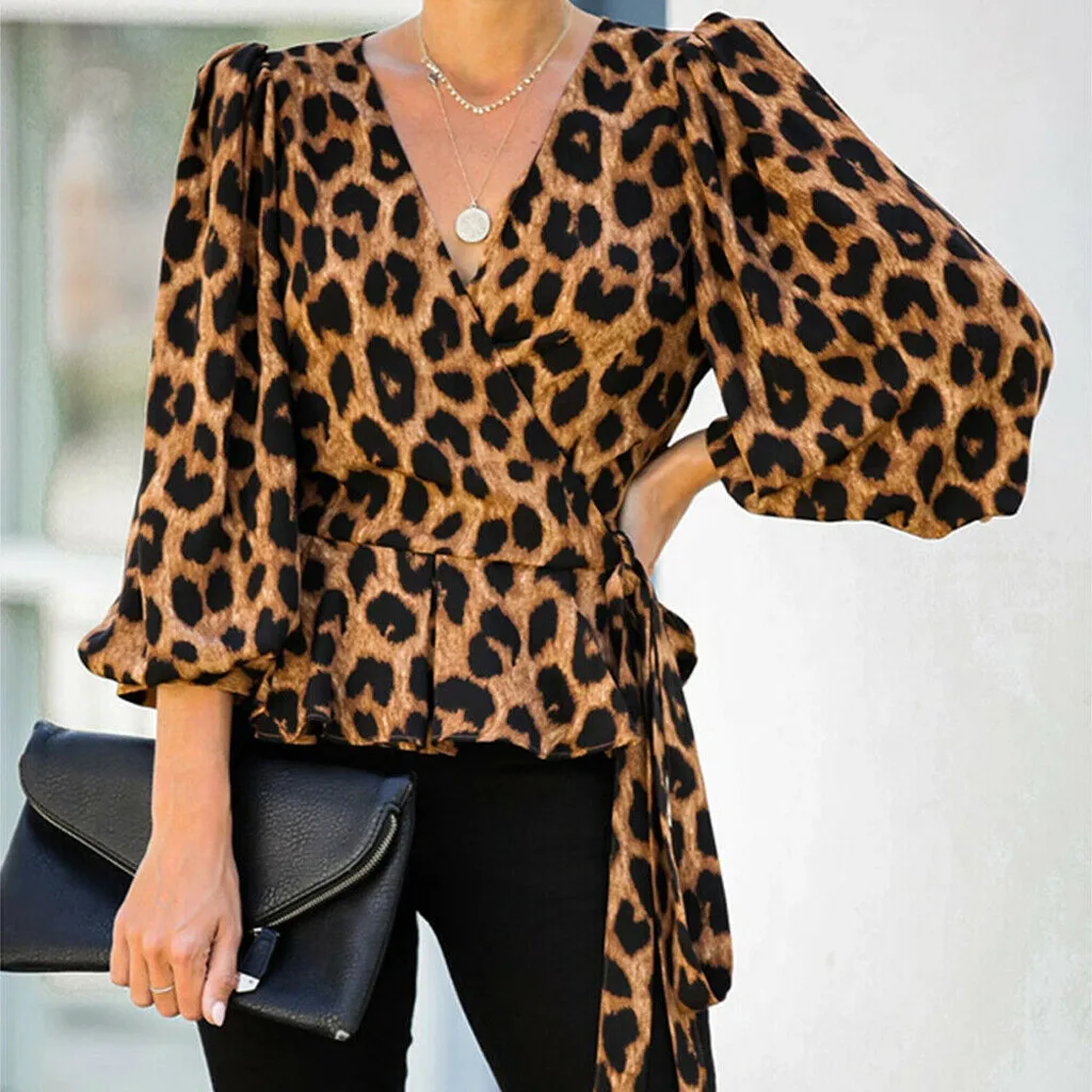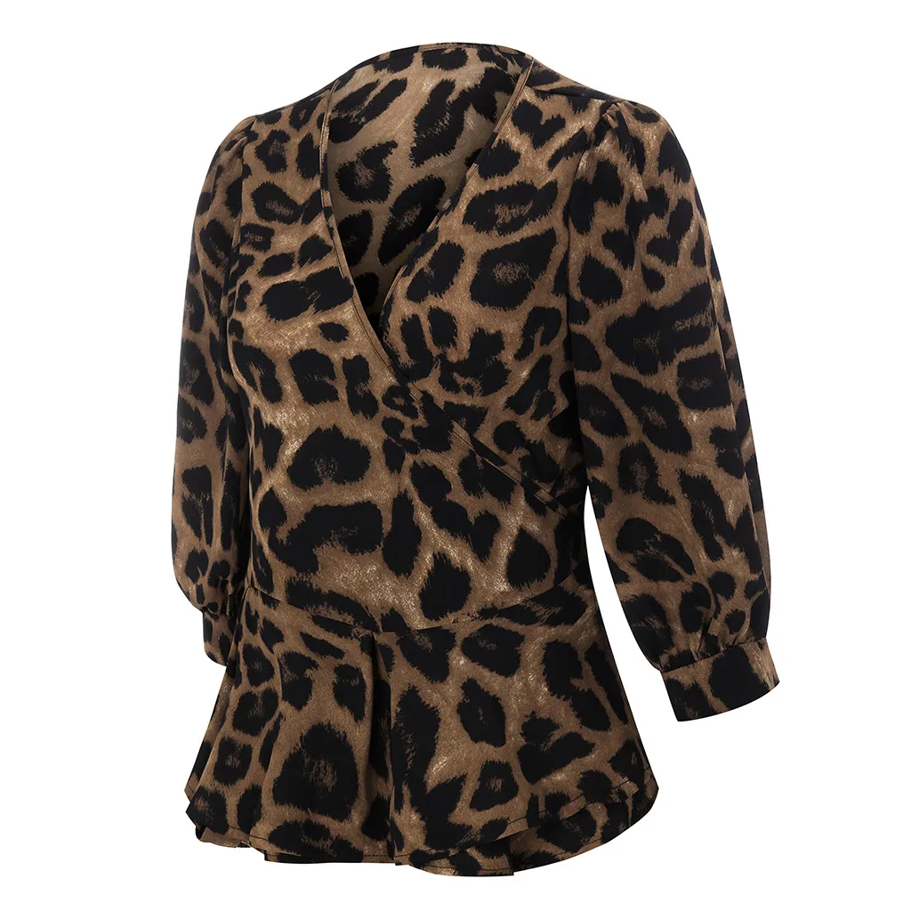 Женская блузка с леопардовым принтом, новинка 2020, летняя модная женская рубашка с v-образным вырезом и рукавом 3/4, офисный пуловер, топы, блузка