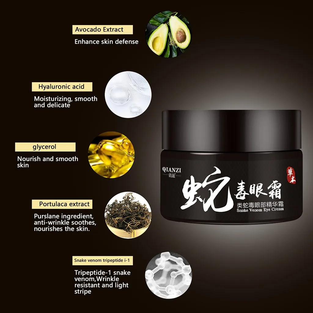 В отличие от традиционных кремов, которые могут работать только на поверхности кожи, кремы для глаз со змеиным ядом могут проникать в нижнюю часть мышц, заряжать клетки внутри и подтягивать коллагеновую структуру внешне.