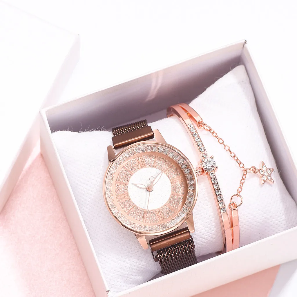 Прекрасный подарок для друзей и семьи Уникальный браслет с модными часами делает вас сиять в толпе Разноцветный циферблат подарит вам больше моды Подходит для любого случая Металлическая текстура поверхности светит больше в толпе Идеальный подарок для мамы, жены или друга Модные тренды подчеркивают личный ШармХарактеристика: