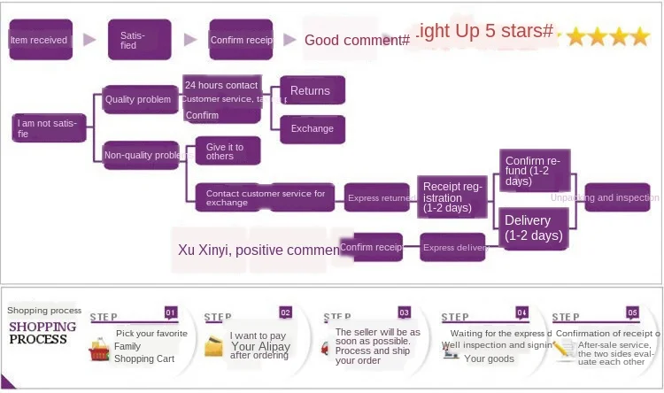 Если клиент получает товары, которые не имеют товаров или имеют проблемы с качеством, пожалуйста, свяжитесь с нашей службой поддержки клиентов в течение 3 дней. Мы дадим вам удовлетворительный ответ, если он просрочен.