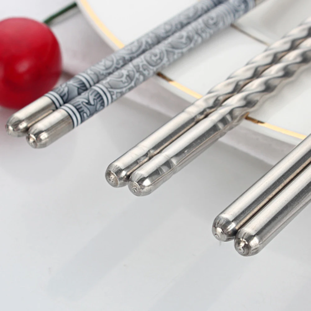 Палочки для еды изготовлены из высококачественной нержавеющей стали, Нескользящие и многоразовые.