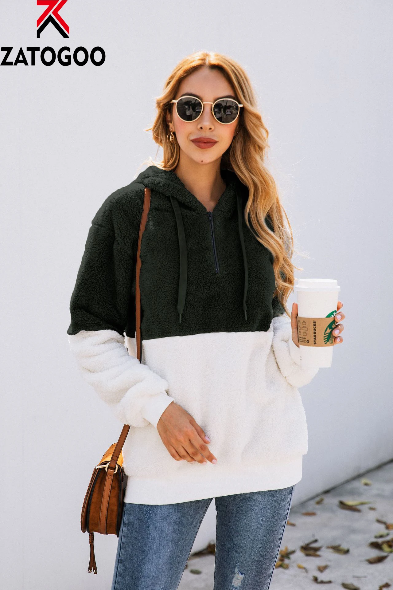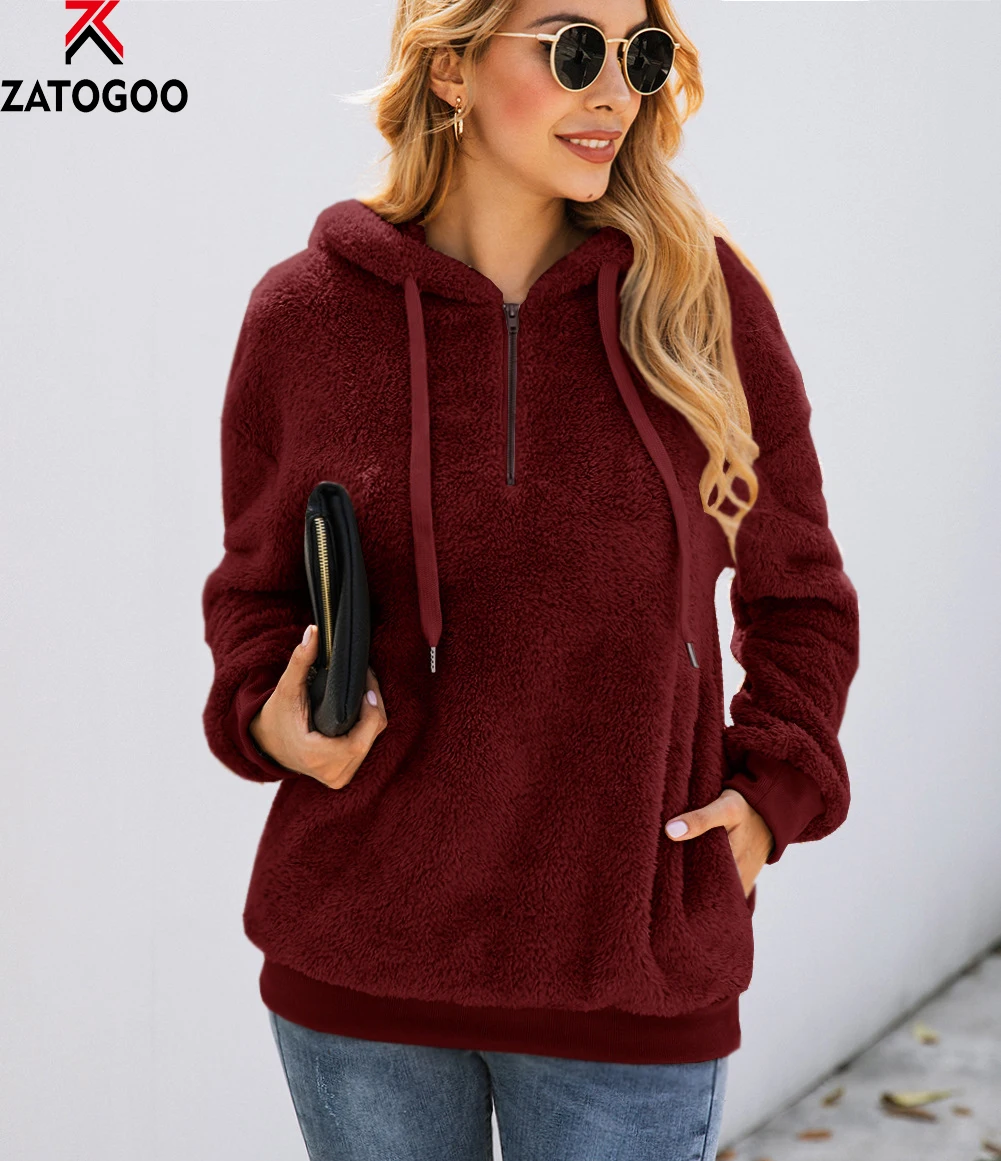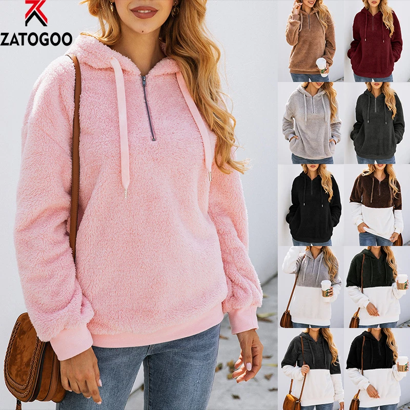 1/4 zip up collar hoodies, 2 side roomy pockets to keep your hand warm, brown, black, khaki, grey, gray, hooded with drawstrings, slouchy outwear, pull on closure, partial zip front hoodies, patchwork pockets Size attention: this pullover runs a bit small, please make sure to order 1 size up, if you want more baggy, 2 size up suggested. Some customer reflected it shed fuzz on the lining, please shake the pullover when you receive it, it will not shed anymore when you wash it. We suggest wash by hand and do not bleach or use hot water. Material: 95% polyester 5% spendex, fuzzy sherpa fleece material, super warm and soft enough, breathable, cozy, comfortable Oversized, plus size, warm outerwear, with hood and pockets, fuzzy hooded tops, womens shearling sweatshirt, casual and cute style, faux fur sweater, chunky hoody coat, solid color This fuzzy sherpa sweatshirt fits for daily wear, school, vacation, work. Easy to pair with boots, jeans, skinny leggings for a fashion look in spring, autumn fall and winter
