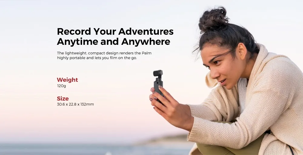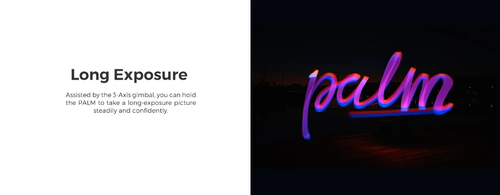Движения на вашей ладони Это Пальма фими! Легко держится в руке, включается всего за 3 секунды. Встроенный Тач-скрин и 5-позиционный джойстик позволяют гибко управлять карданом, а также встроенную камеру. Вам не нужны дополнительные инструменты для пленки, как профессионал. Порт USB Type-C поддерживает быструю зарядку и передачу файлов. И стандартная резьба 1/4 "поддерживает различные аксессуары, включая Удлинительный стержень и штатив. Все это делает ладонь нужной для встраивания. Основные Особенности: ● Портативность: 30,5x22,7x127,0 мм корпус весит всего 120 г. Легкий, компактный дизайн делает ладонь очень портативной и позволяет снимать на ходу. ● На шарнирном замке с 3 Осями для смартфона: Сделано в высшей степени стабильной и гладкой, ваших кадров lossless и Встряхни» бесплатно. ● Ультра широкоугольный объектив на 128 °: ладонь идеально подходит под лучший угол зрения человека, захватывает более запоминающиеся моменты, создавая для вас большой мир. ● Изображение 4K UHD 100 Мбит/с: в сочетании с чипом ISP последнего поколения от hissilicon ладонь обнаруживает более подробную информацию, которую вы могли бы пропустить. ● 240 минутах Срок службы батареи: Ладонь принимает Профессиональный Hisilicon SoC и большой емкости литиевая батарея, который имеет превосходную управления питанием любой велосипедной поездке. С USB-C портом, он удовлетворяет ваши ежедневные потребности в съемках и обеспечивает потрясающие результаты. ● Wi-Fi и Bluetooth: ладонь может быть подключена к вашему смартфону через встроенный Wi-Fi и Bluetooth. Во время съемки дистанционное управление и передача позволяют легко просматривать и умнее управлять камерой gimbal. Вы также можете загружать соответствующие материалы по беспроводной сети на свой телефон и редактировать кадры в приложении. ● Умное отслеживание: ладонь может распознавать лица человека автоматически и следующим образом. Или, вы можете нажать на тему на сенсорный экран, чтобы сохранить его в центре изображения. ● Режим истории: приложение предоставляет не только множество шаблонов с одним касанием и шаблонов съемки, но и предустановленные эффекты перехода и фоновую музыку. Вы можете легко превратить ваши кадры в Кинематографическое видео. Профессиональные, полированные работы на кончике пальца. ● Встроенный двойной микрофон и микрофон Порты и разъёмы: с базой, вы можете непосредственно подключить 3,5 мм Высокое качество микрофоном и удобным для ладони. Вам предоставляются дополнительные возможности для внешней аудиозаписи. ● Интегрированная 5-позиционный джойстик: он прост в эксплуатации и управления ладони. ● 4 режима съемки: от великолепного пейзажа до фигур, ладонь поможет вам снимать с разных точек зрения: режим блокировки шаг, режим FPV, режим следования и все Заблокированные режимы. Вы просто не можете получить достаточно удовольствия от него. ● Несколько функций: креативные рамки; Таймелипсе, lapse, hyperlapse; super hdr; Профессиональные алгоритмы AE/AW скрасят изображения разных цветов; Длительное воздействие; Ночной снимок; Панорама; 8х медленное движение; 3x стабилизированный зум; Отметьте и отредактируйте; HEVC кодирование для отличного качества изображения и меньшего пространства. ● Разрешение 240x240; 1,22 дюйма; Экран яркости 600 НИТ. Параметры: Емкость аккумулятора: 1000 мАч Срок службы батареи: 240 минут (1080P/30 кадров в секунду время записи вид
