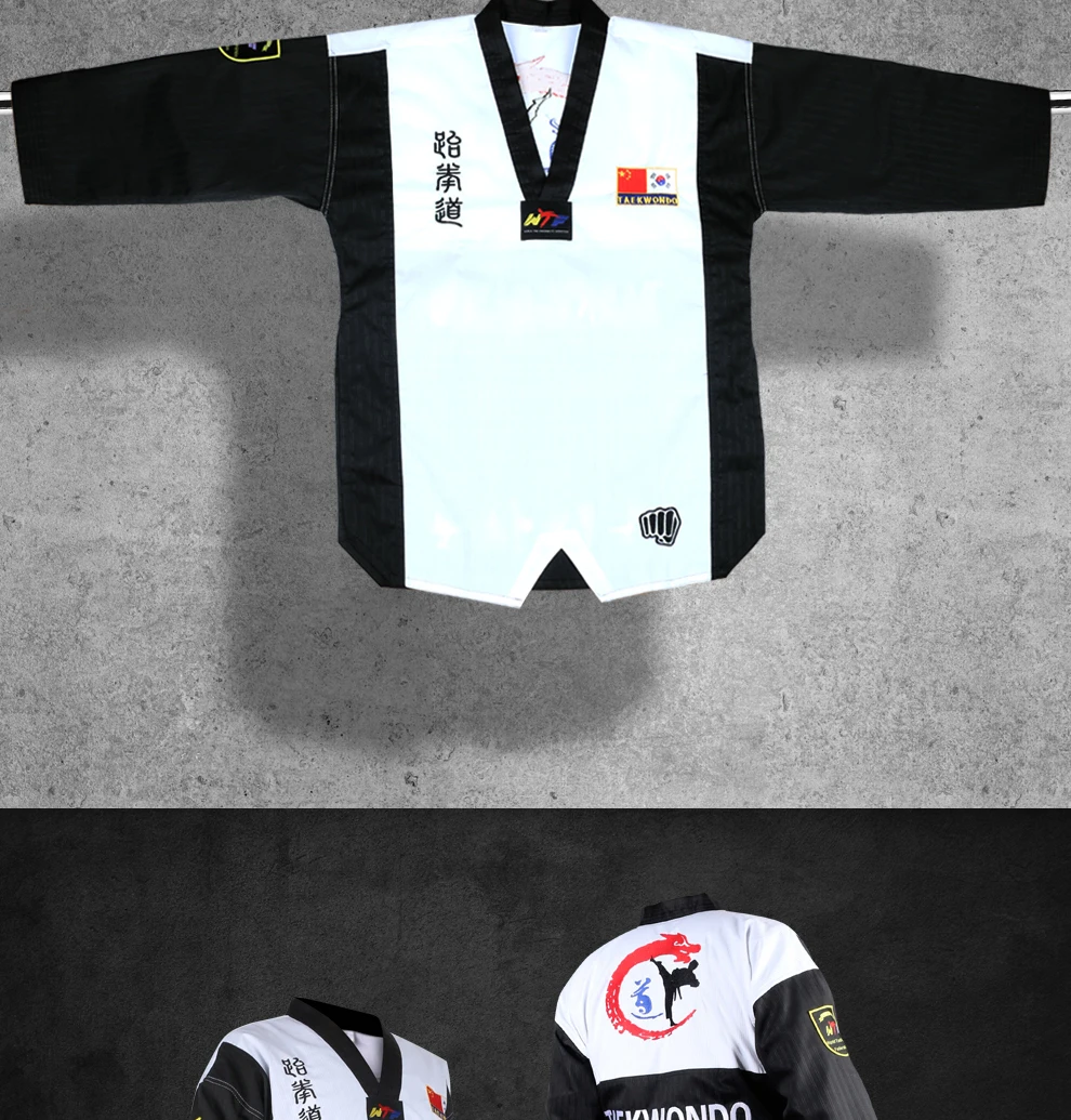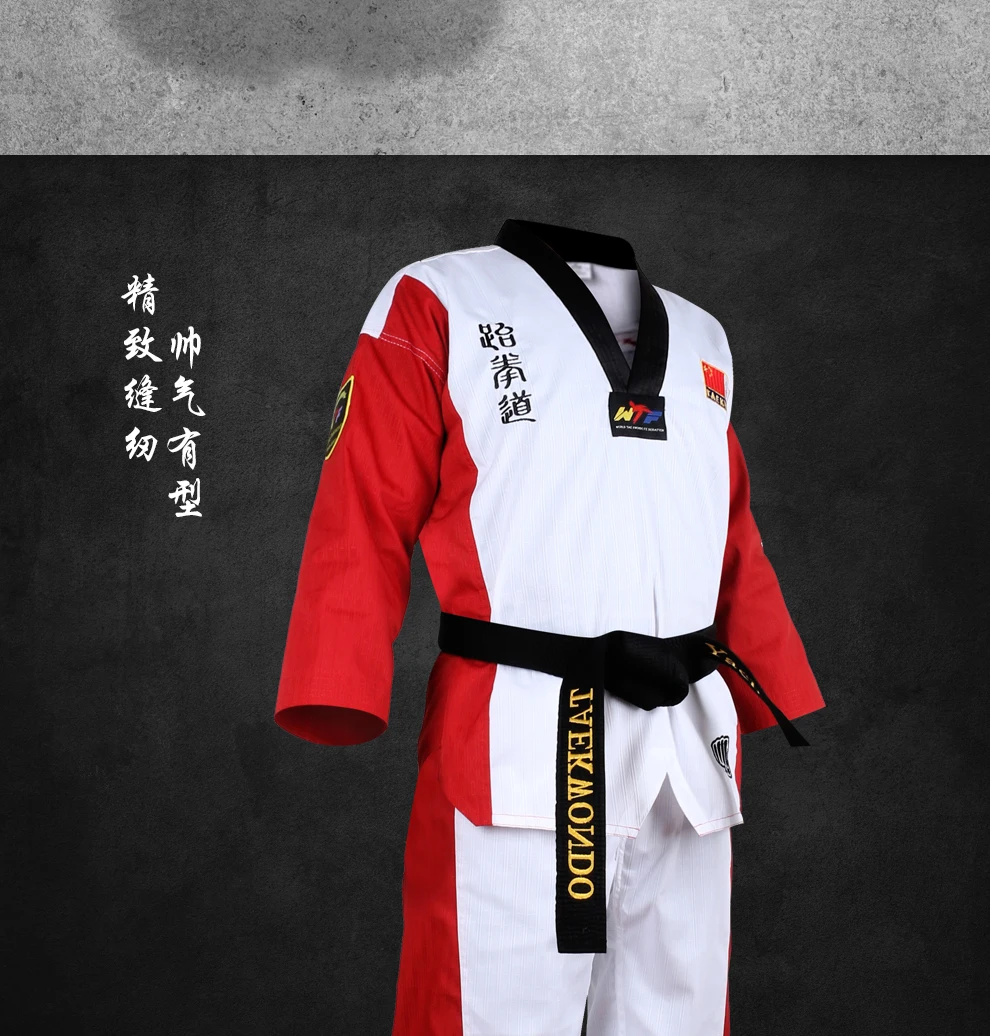 Высокое качество, цветная форма для тхэквондо для взрослых детей, подростков, Poomsae, добок, красный, синий, черный, tae kwon do, одежда WTF, одобренная Цвет: красный/синий/черный Размер: XXXS/XXS/XS/S/M/L/XL/XXL/XXXL