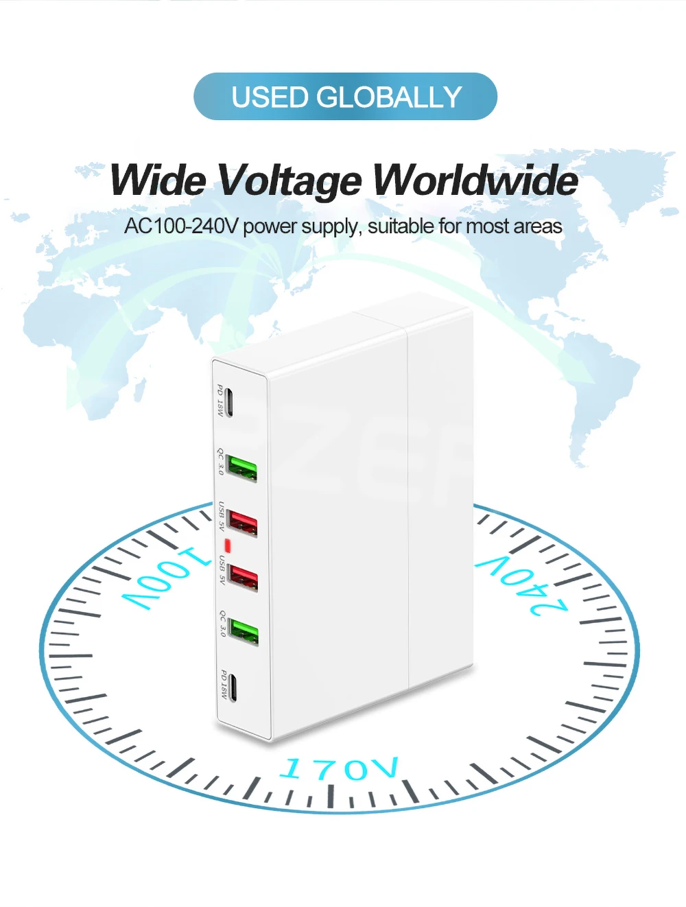 6. Широкий диапазон напряжения по всему миру, источник питания переменного тока 100-240 В, подходит для большинства областей.