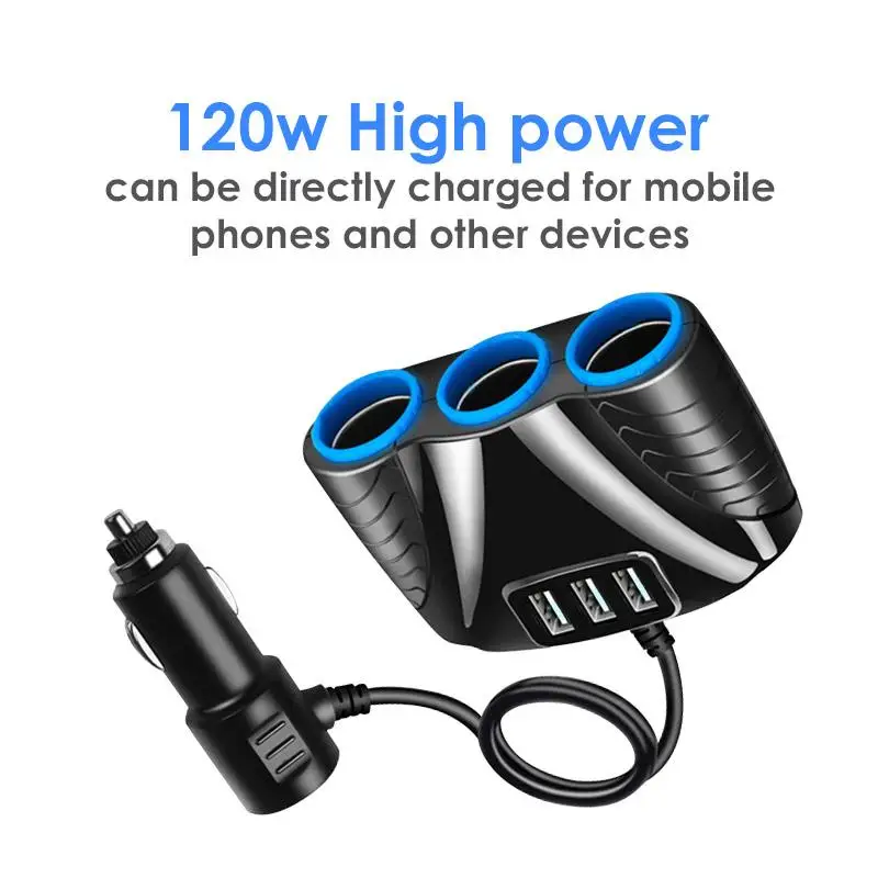 -Этот адаптер для прикуривателя с 3 гнездами имеет Удлинительный шнур, подключение на большое расстояние, что облегчает зарядку устройств друзьями на заднем сиденье.