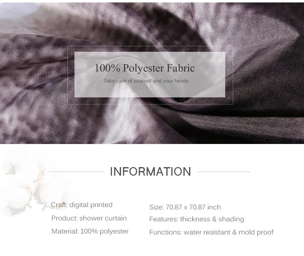 Изготовлен из высокого качества 100 полиэстер плотную ткань, и он не получит никаких повреждений от стиральная машина. Эта занавеска для душа не слишком тонкая или толстая, водостойкая и быстро сохнет после купания