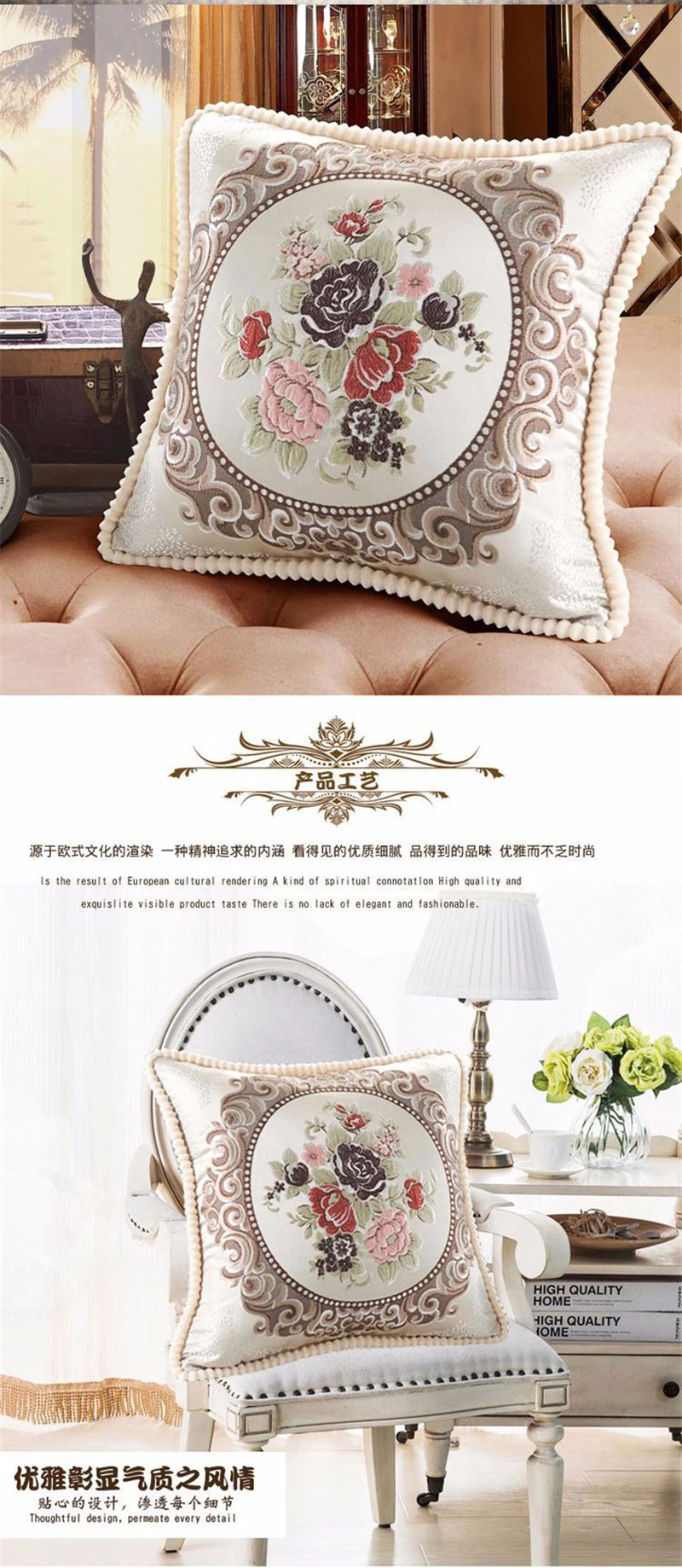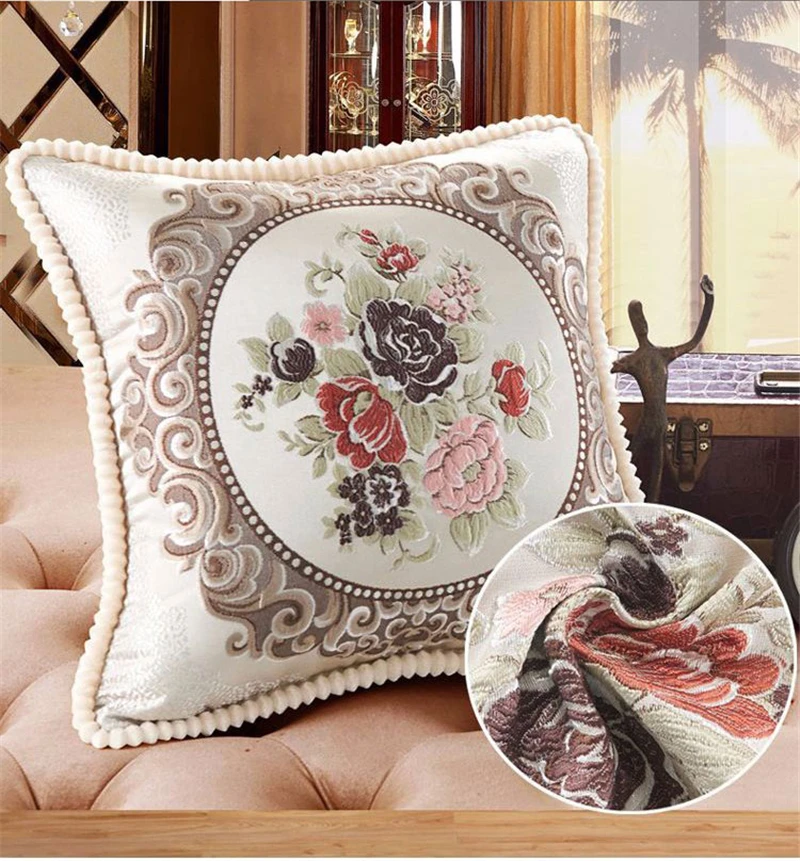 Размер: 48*48 см/19*19 дюймов Материал: мягкая ткань из синели Узор: высокоточная жаккардовая вышивка с цветочным рисунком Тип: Европейский роскошный Ретро Стильный чехол для подушки Комплектация: 1 x наволочка (без наволочки)