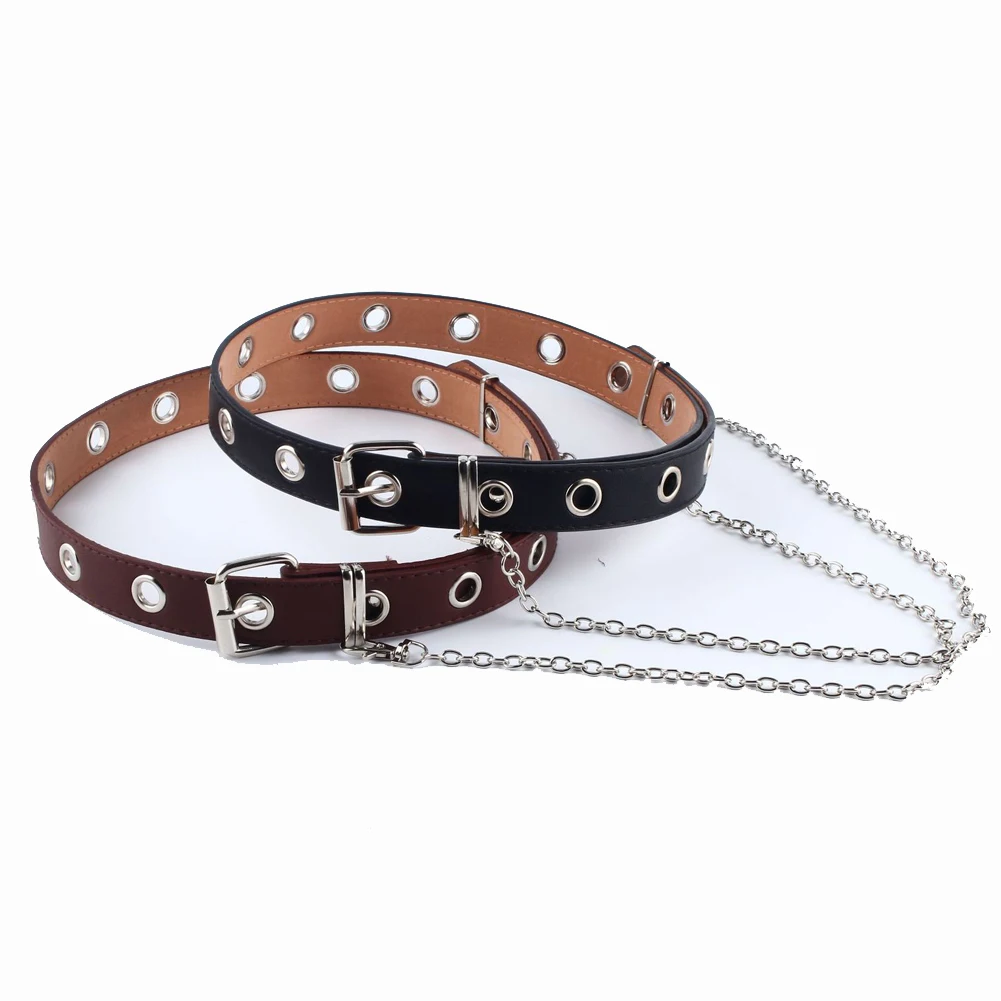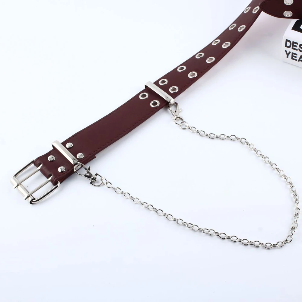 Модная Панк цепь Регулируемый двойной/одиночный люверс втулка кожаный ремень с пряжкой