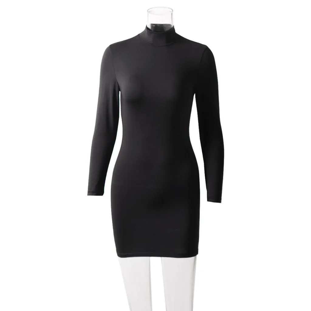 Модное женское сексуальное однотонное облегающее мини-платье с длинным рукавом и воротником-стойкой