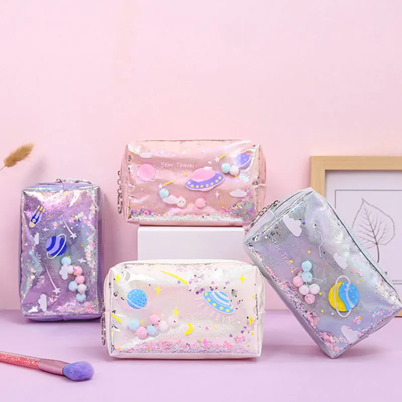 Милый чехол-карандаш с лазерной кожаной ручкой, большая косметичка, сумка для монет для девочек, подарок