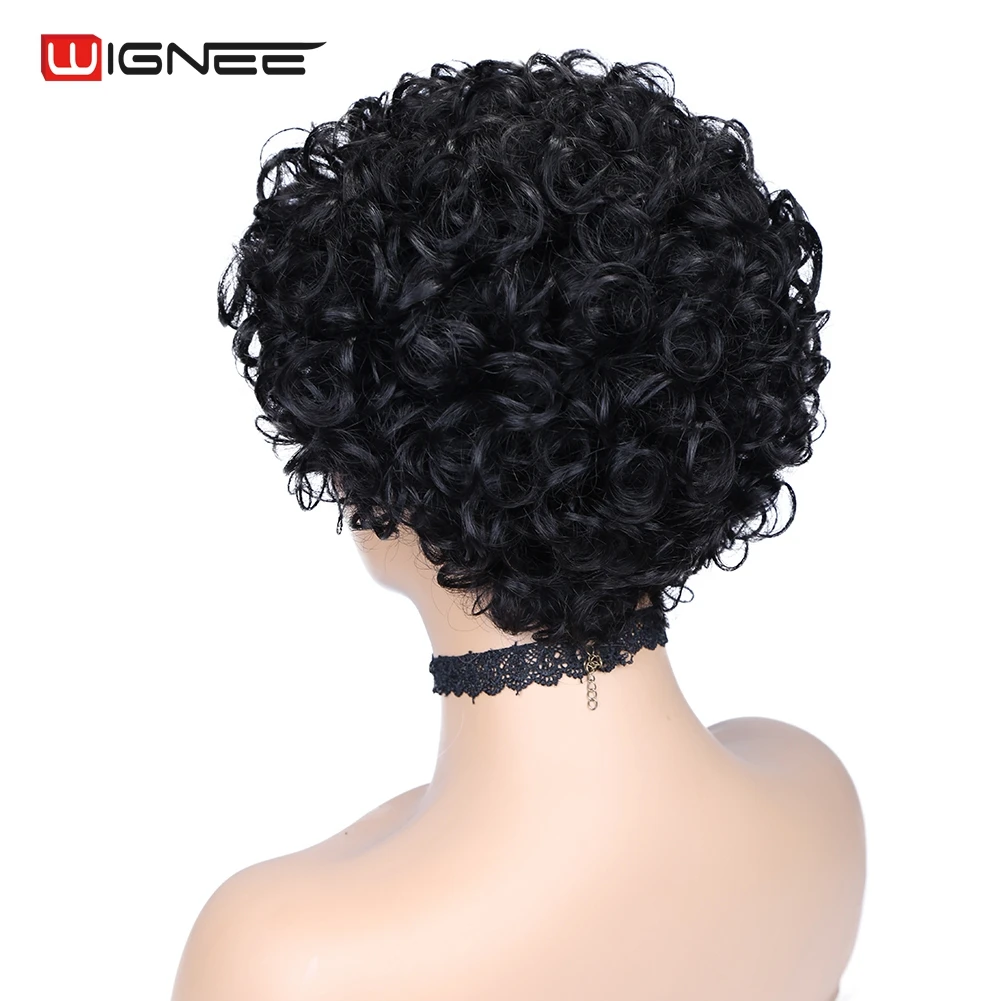 Wignee, короткие кудрявые человеческие волосы, парики для черных женщин, 150%, высокая плотность, Remy, бразильские волосы, короткие, Pixie Cut, человеческие парики, Бесплатная челка