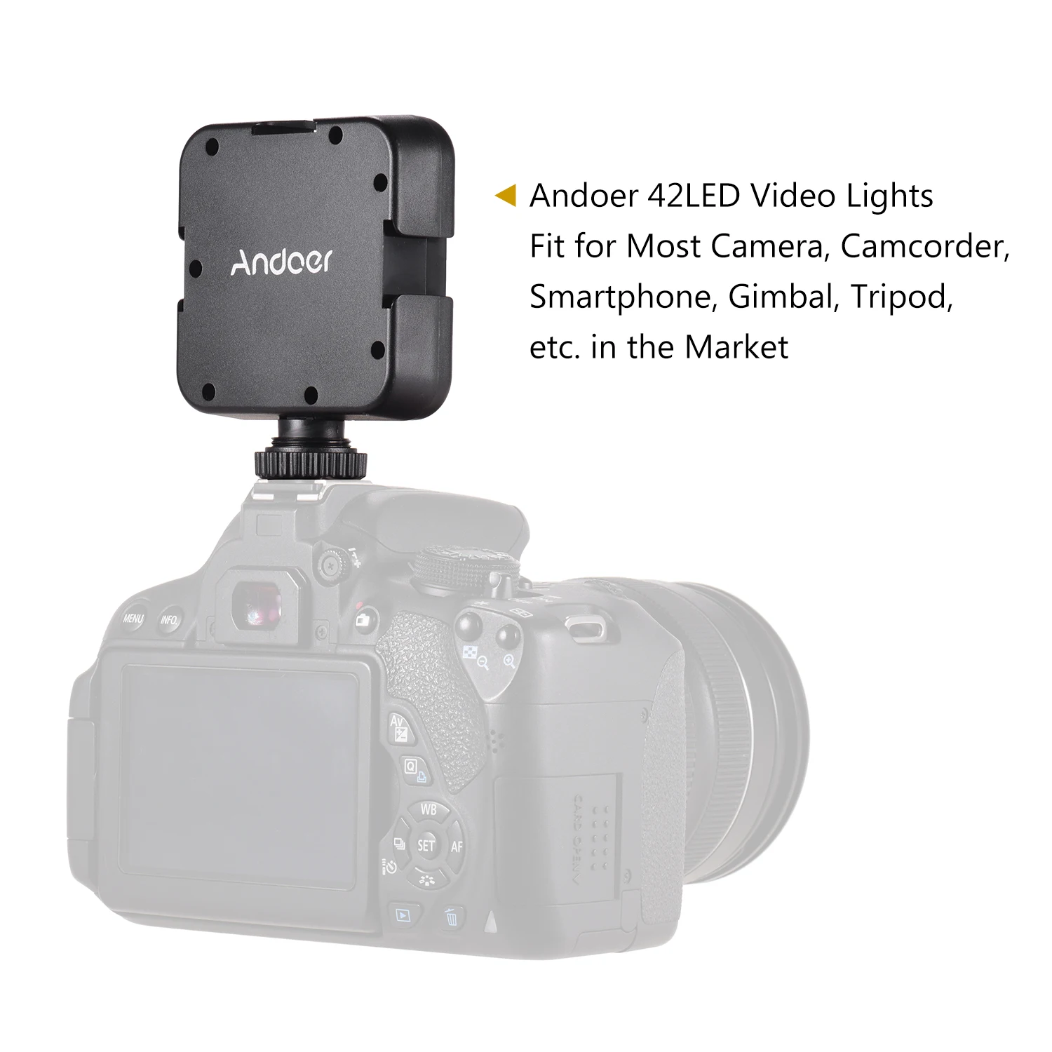 Andoer светодиодный светильник представляет собой портативный видео обращаем ваше внимание, светильник с изображением светильник вес, маленький размер и высокая яркость.