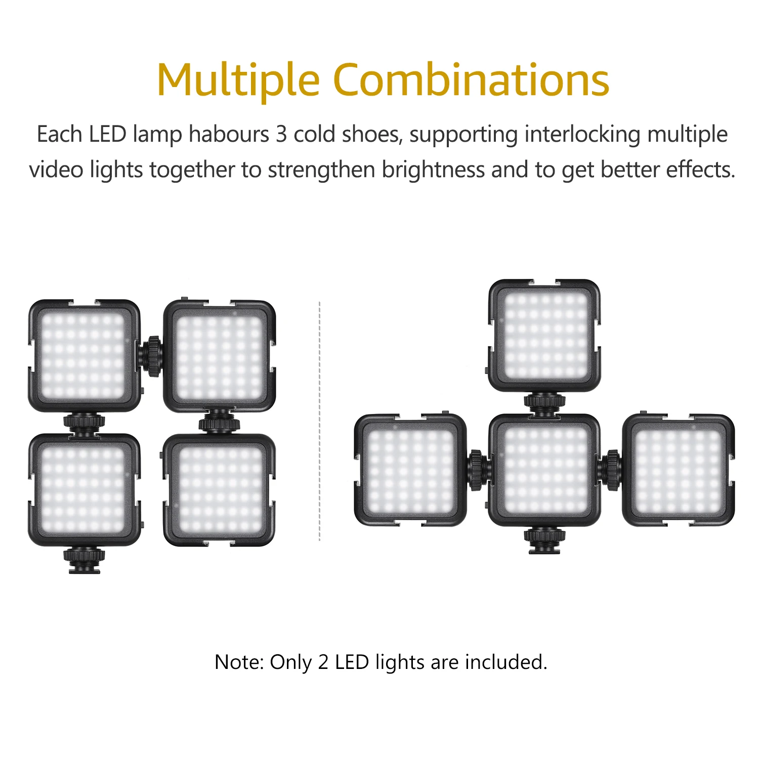 3. Крепление для холодной обуви: Поддержка блокировки нескольких видеосъемки, несколько огней можно блокировать вместе, чтобы повысить яркость освещения и улучшить эффекты освещения.