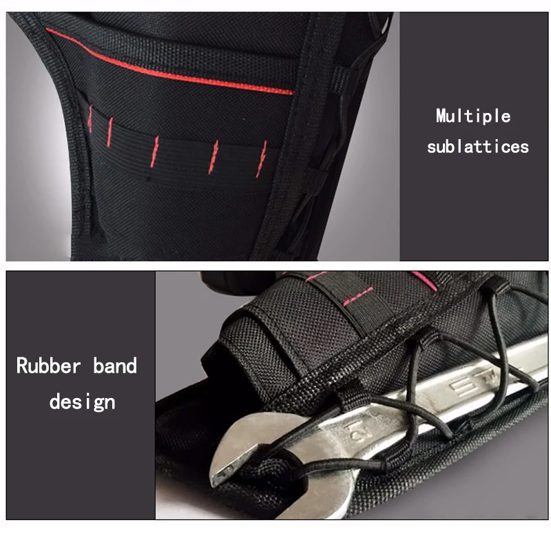 ** Легко носить с собой: вы можете прикрепить сумку для инструментов к поясу, петлю для ремня с сильной кнопкой для легкого крепления, удобно получить доступ к инструменту, который вам нужен.