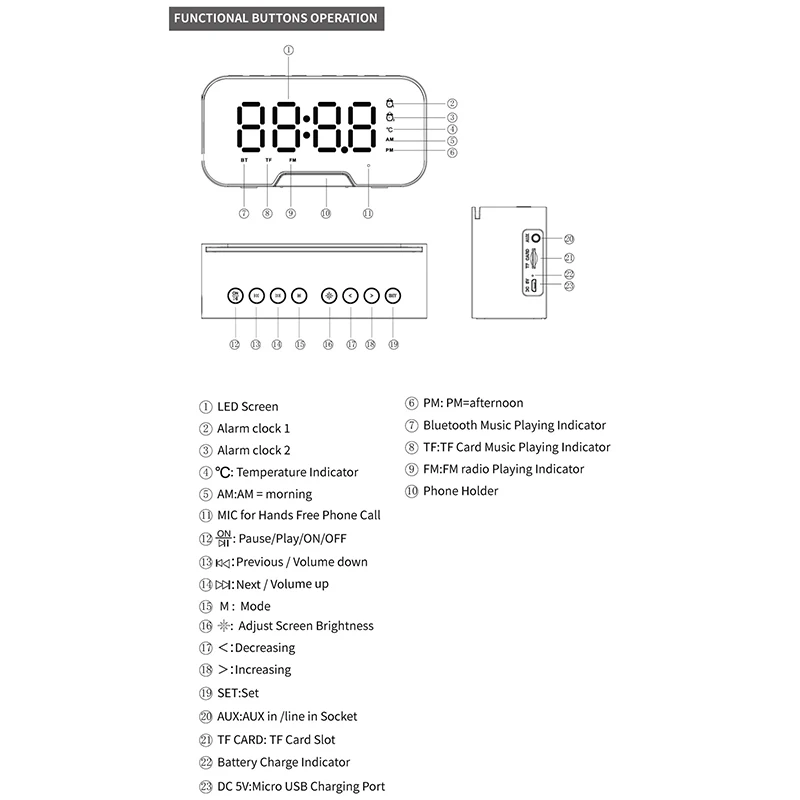 Многофункциональный! Этот беспроводной bluetooth-динамик и зеркальный будильник могут сделать это в буквальном стиле! Подключите телефон или устройство к bluetooth, чтобы слушать радио или собственную музыку, или просто используйте один из наших вариантов! Этот продукт является идеальным и наиболее удобным устройством для вашей спальни. Другие невероятные особенности этого bluetooth-динамика и зеркального будильника включают в себя затемняемый дисплей на основе того, насколько ярко вы хотите, чтобы светодиодный светильник был, а также возможность громкой связи!