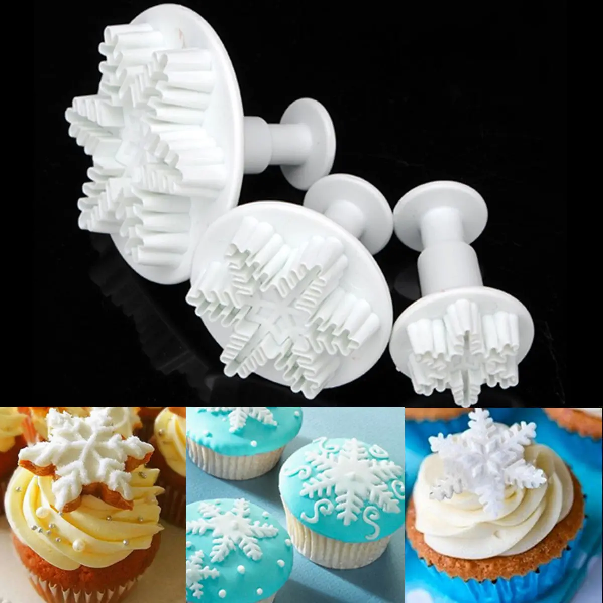 3 шт., форма для резки снежинок, плунжера, сахарная помадка, инструмент для украшения торта