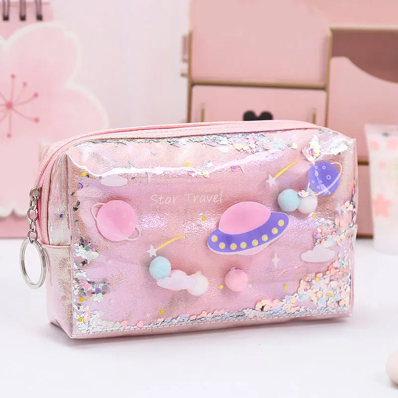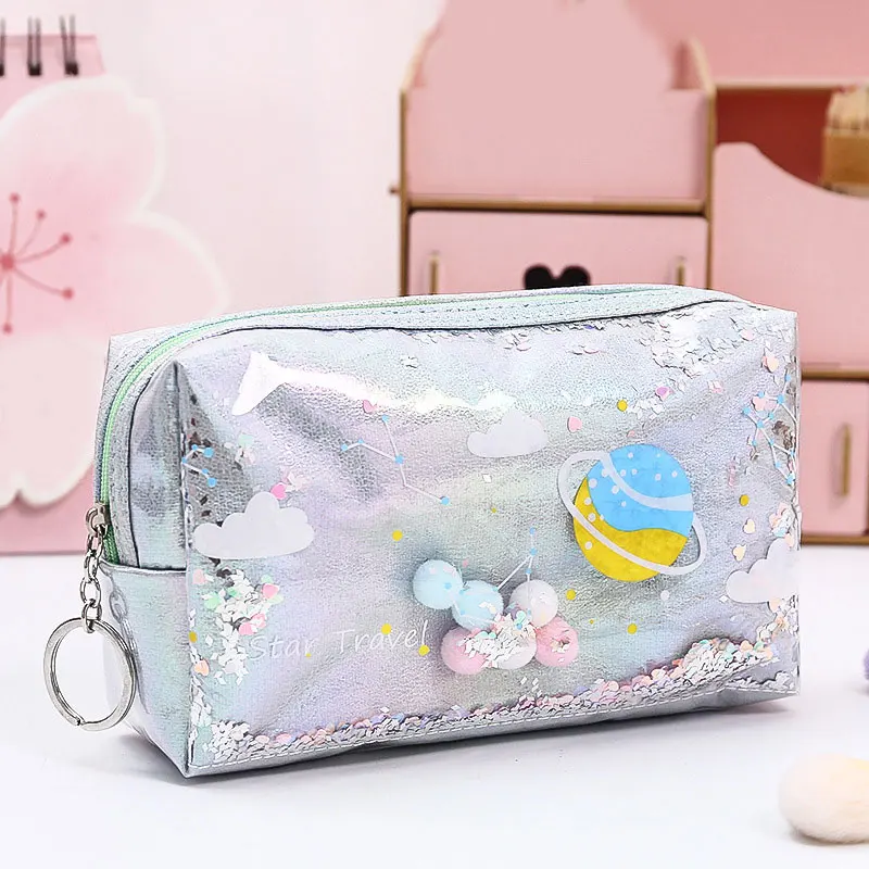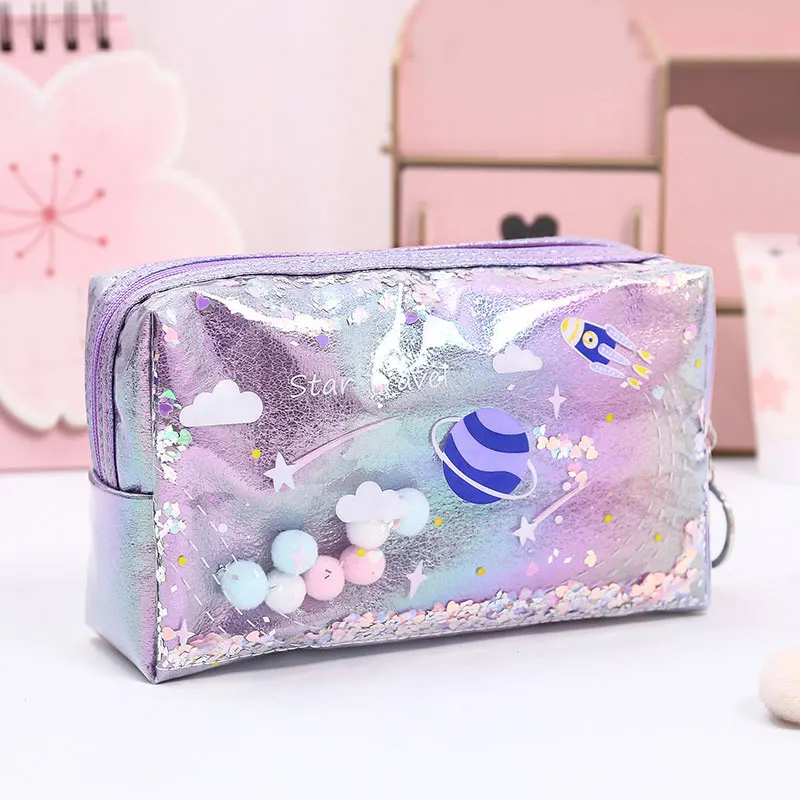 Милый чехол-карандаш, лазерная кожаная коробка для ручек, большая косметичка, сумка для монет для девочек, подарок