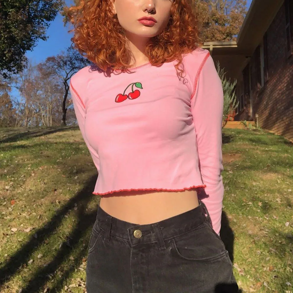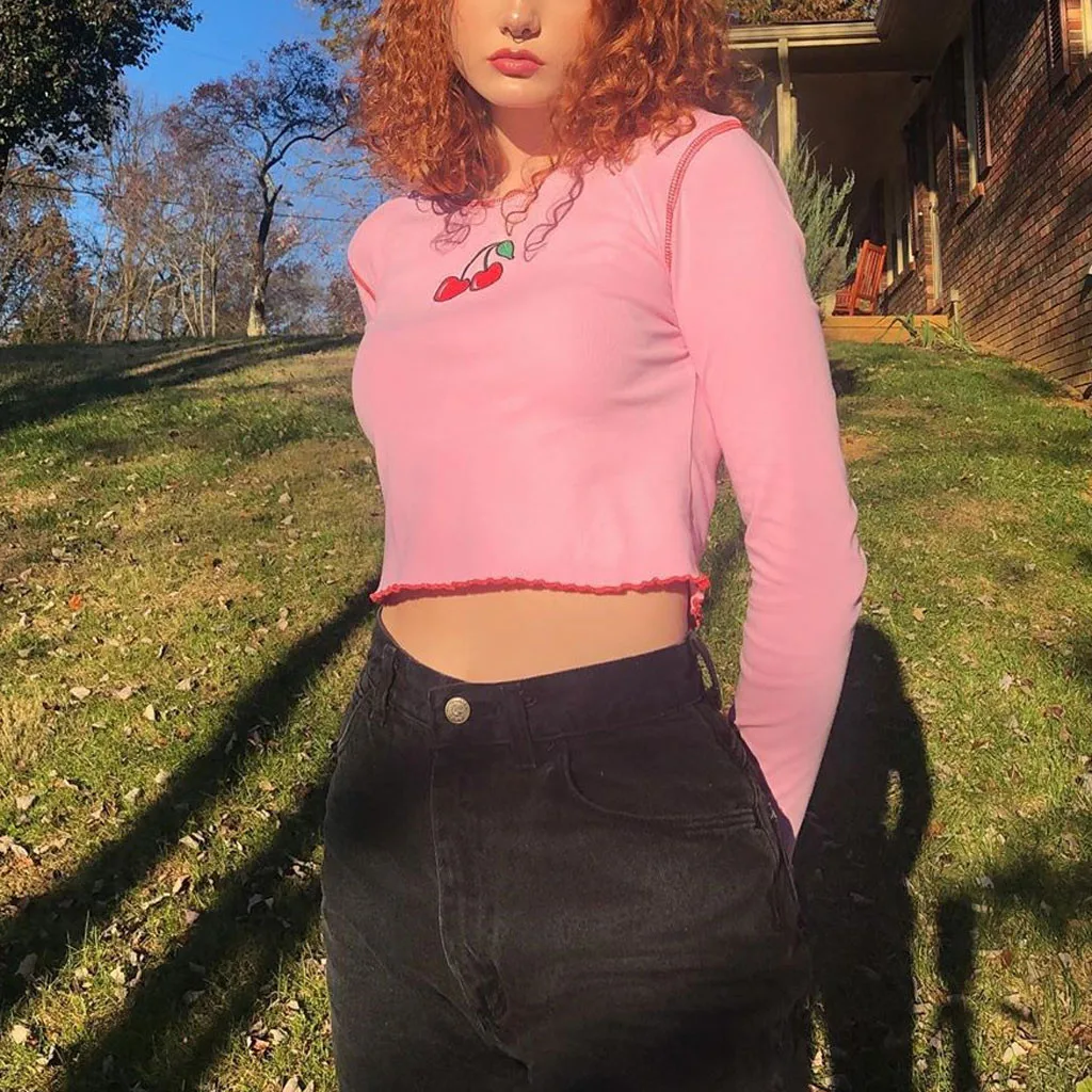 1. Особенности: женский топ, милый, модный, длинный рукав, гофрированный воланом, топ.Информация о продукте: