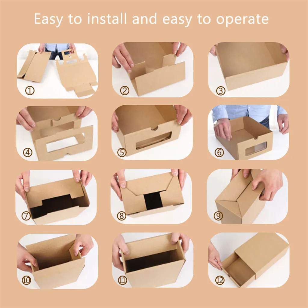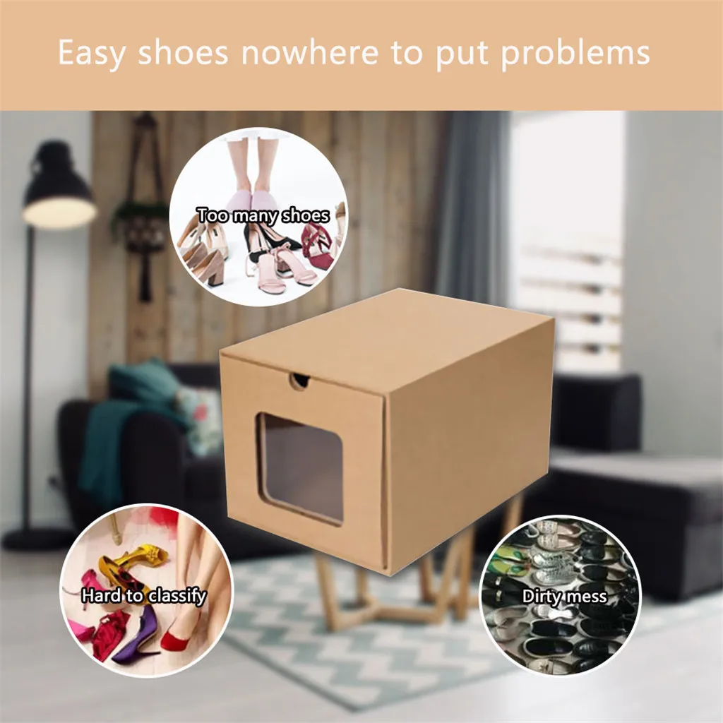 Визуальная утолщенная коробка для обуви с выдвижными ящиками-утолщенный материал из крафт-бумаги, простая установка, рисование, близкий визуальный дизайн, легкое добавление, гигиеническое получение.