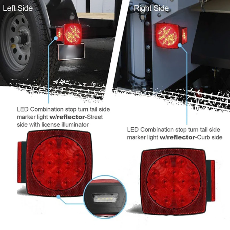 Правая сторона имеет 12 Красный квадратный светодиодный (стоп, поворот и хвост) , 4 красный круглый светодиодный (боковой маркер)