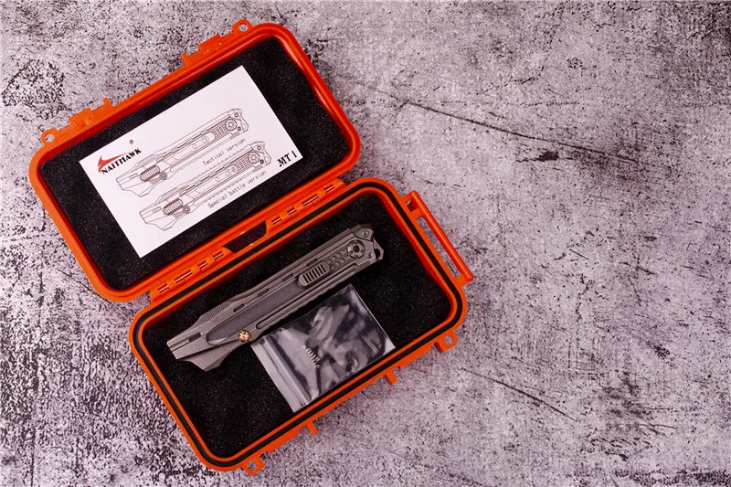 Общая длина: 180 мм (7 ”) Закрытая длина: 125 мм (4,92 ”) Материал лезвия: 9Cr18MoV Материал ручки: титановый сплав TC21 Поверхность ручки: каменный или DLC (алмаз-как углерод) черный Ширина рукоятки: 27,5 мм Толщина ручки: 11 мм Вес нетто: 110 г Посылка: коробка Лезвие может быть изменено для CKB-2 режущего лезвия (CKB-2 лезвие не входит в комплект) Может быть вставлен Тритиевой трубкой (трубка не входит в комплект) Размер трубки: 2 шт 1,5*6 мм, 10 шт 0,65*4,1 мм