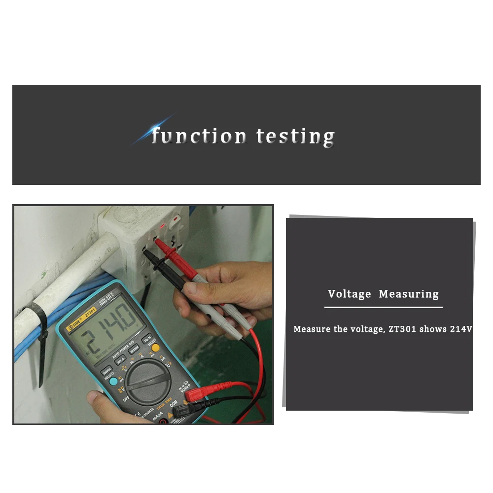 Измерьте напряжение переменного/постоянного тока, ток переменного/постоянного тока, сопротивление, емкость, частоту, рабочий цикл, температуру, Диод и непрерывность.