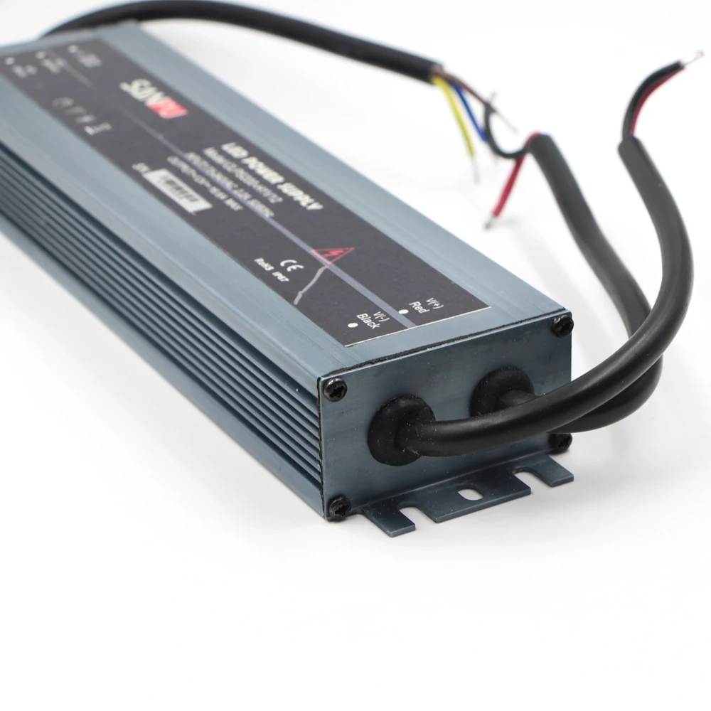 12V/24V 200W 250W 300W power supply input voltage of 175-240V AC, part of the home voltage of only 110V countries can not use 200W. Example: United States,Japan. before buying, please be sure to understand the voltage situation, Thank. Features: Universal AC input / full range It's good quality & high performance Input:AC 100-240V / AC 175-240V 50/60Hz Out put: DC 12V / DC 24V DC12V:60W 100W 120W 150W 200W 250W 300W 100% full load burn-in test Protections: overload/ over voltage/ short circuit Cooling by free air convection This Power Supply Unit "DOES NOT come with installation instruction, wiring cable, on/off switch, or screws. Professional installation of qualified electrician is highly recommended. How to calculate Support max LED Strip Length: Assumption: Your LED Strip 60LEDs/m, and each LED 0.2W, then calculate max LED Strip Length: 0.2W/LED × 60LEDs/m=12W/m, 60W(this listing)÷12W/m=5m, So, Support the LED Strip(60LEDs/m, 0.2W/LED) Length (Max)=5M Connection: L, N,GND: AC power input V-: DC power output "-" V+: DC power output "+" ADJ: Adjust the output voltage Safety Compliance: CCC / FCC / CE / ROHS Working Temperature: 0~40 Storage Temperature: -20~60 Ambient Humidity: 0~95% Non-Condensation Products specification: Item Output current Output voltage Input voltage Size Weight 1 60W DC12V/24V AC100-240V 18*60*167mm 350g 2 100W DC12V/24V AC100-240V 18*60*178mm 370g 3 120W DC12V/24V AC100-240V 18*60*179mm 360g 4 150W DC12V/24V AC100-240V 32*58*210mm 680g 5 200W DC12V/24V AC175-240V 32*58*238mm 800g 6 250W DC12V/24V AC175-240V 33*70*240mm 920g 7 300W DC12V/24V AC175-240V 33*70*240mm 930g Package include: 1 x Lighting Transformer