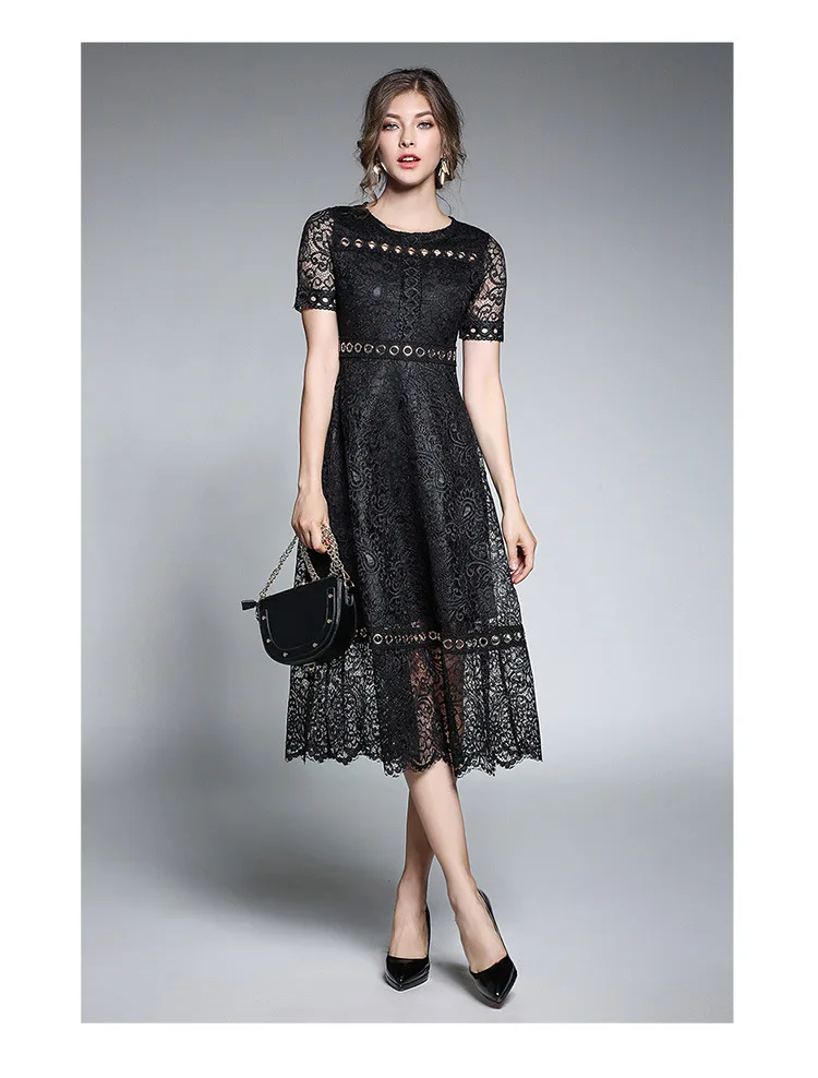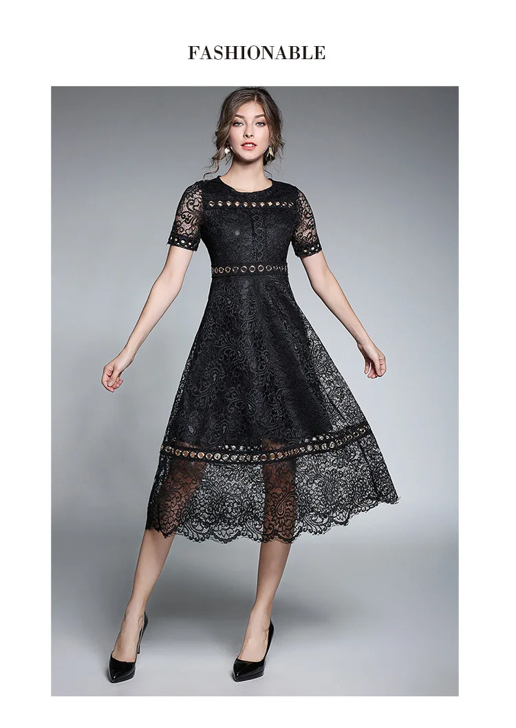 Женское подиумное Новое Кружевное длинное платье с круглым вырезом и короткими рукавами, тонкое лоскутное платье с металлической пряжкой, модные рабочие платья AW444