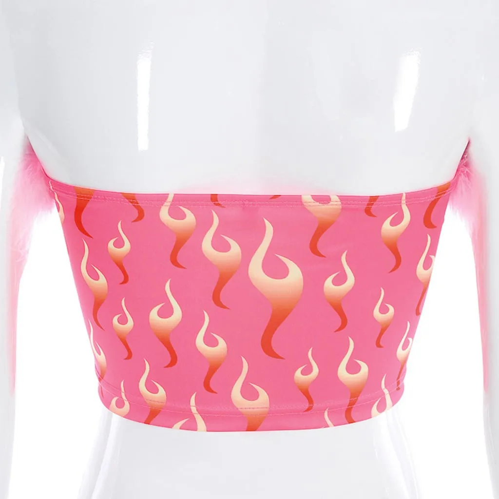 Женский топ на бретелях с пожарным принтом, сексуальный светоотражающий Топ без рукавов с пряжкой