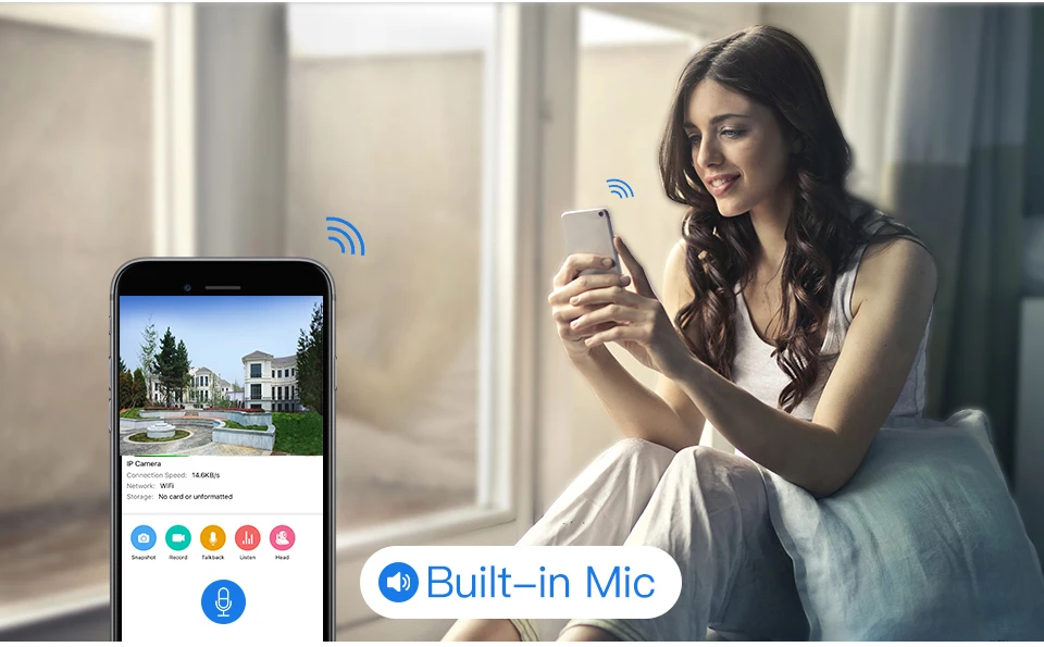 Эта Wi-Fi камера может взять аудио вокруг, и это даст вам четкий голос о том, что происходит на другой стороне.