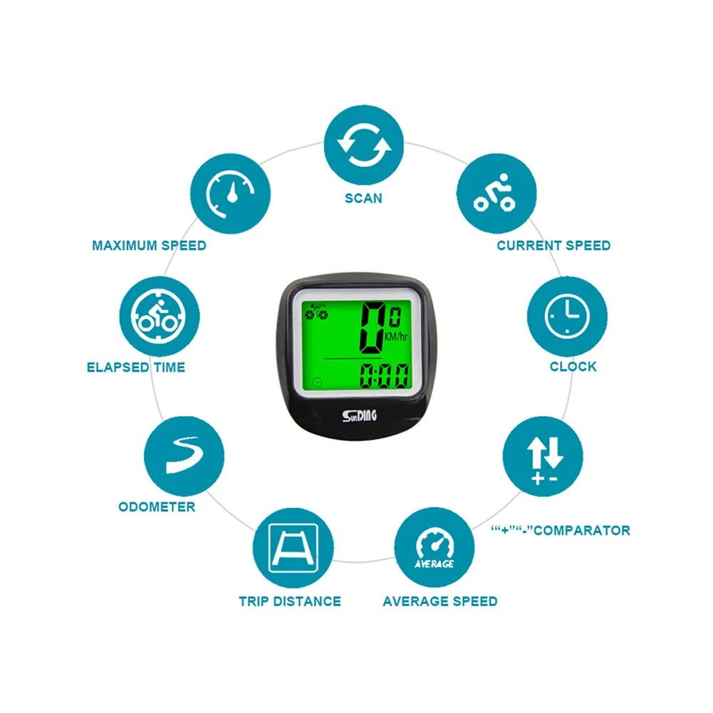 Sunding Водонепроницаемый одометр для велосипеда ЖК-цифровой дисплей езда проводной спидометр