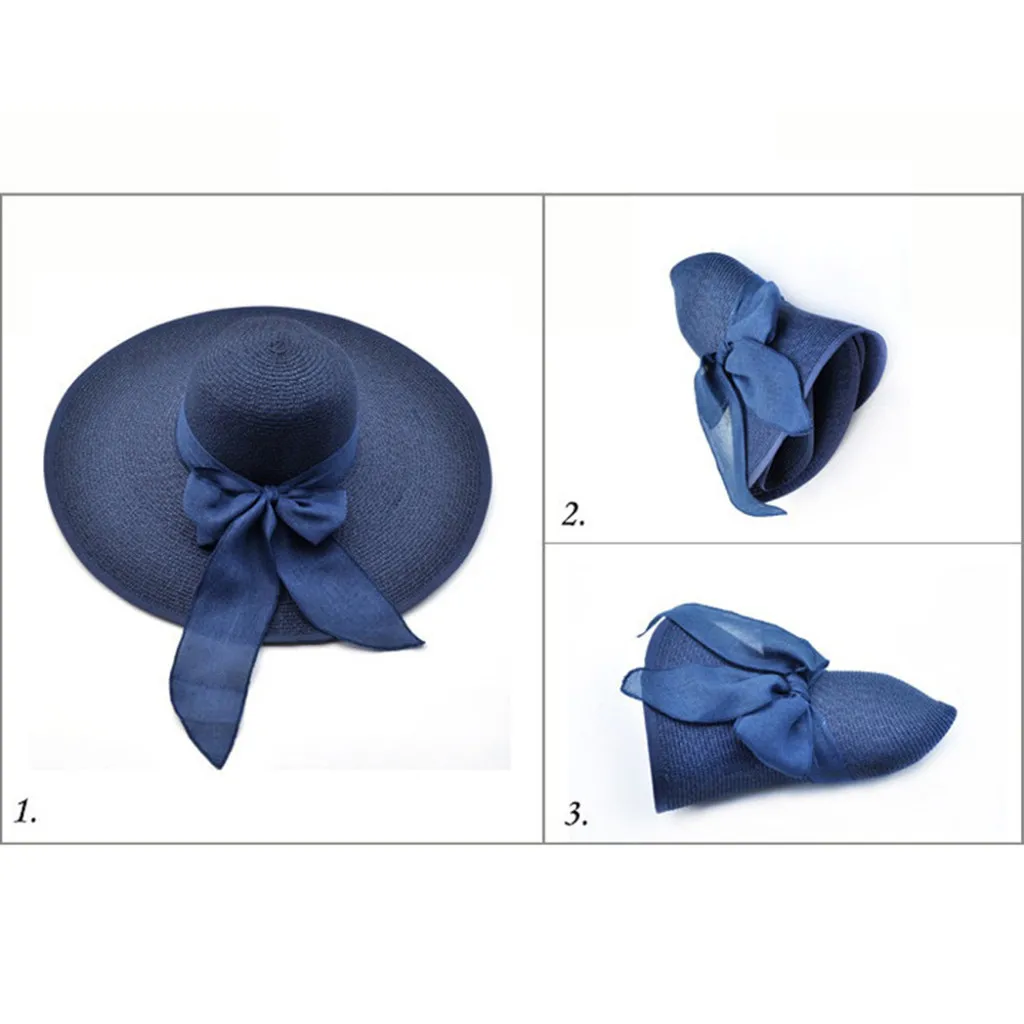 Женская соломенная шляпа с большими полями, широкополая шляпа от солнца с широкими полями, новая складная пляжная шляпа с бантом