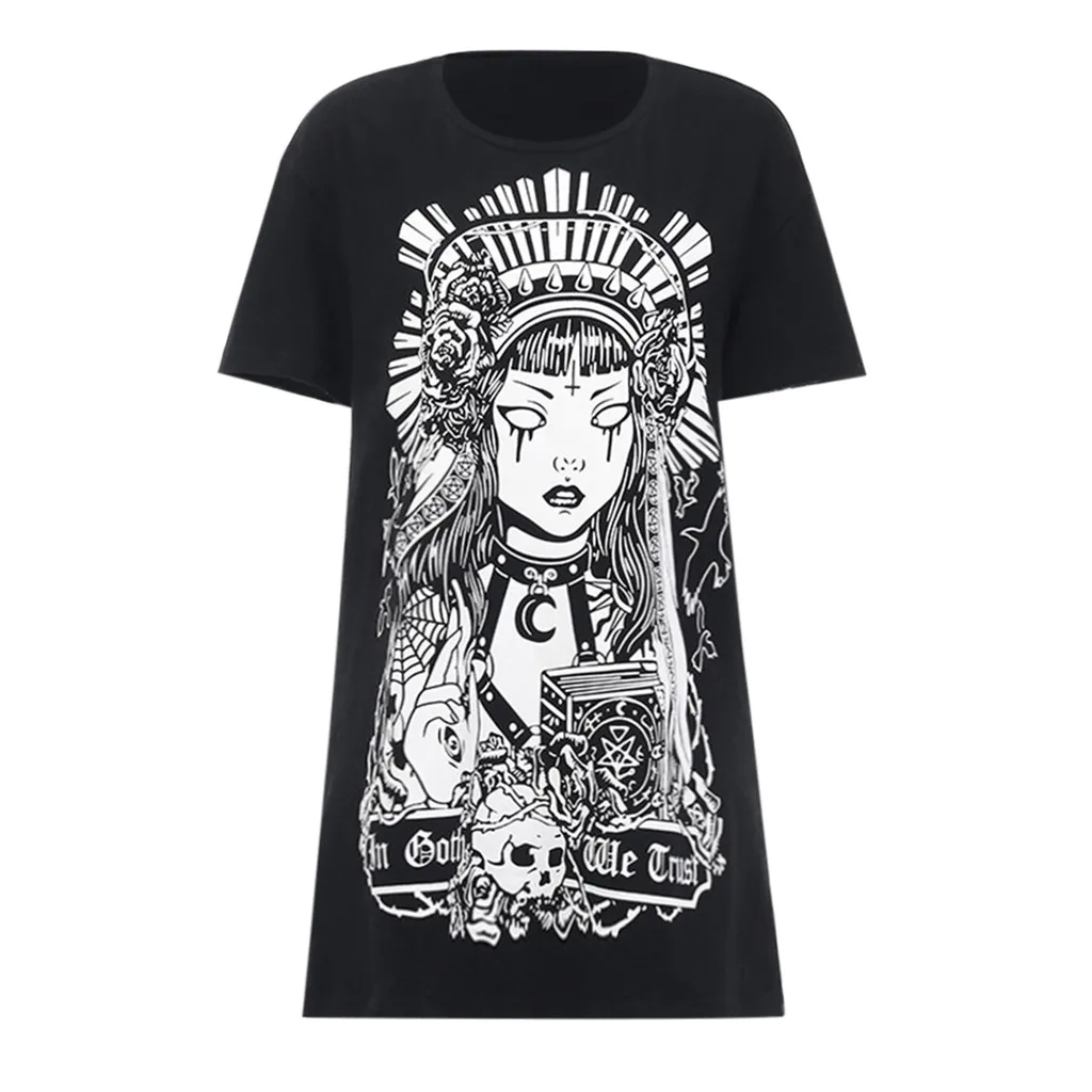 Женское уличное готическое черное ретро-платье с принтом и коротким рукавом в стиле панк