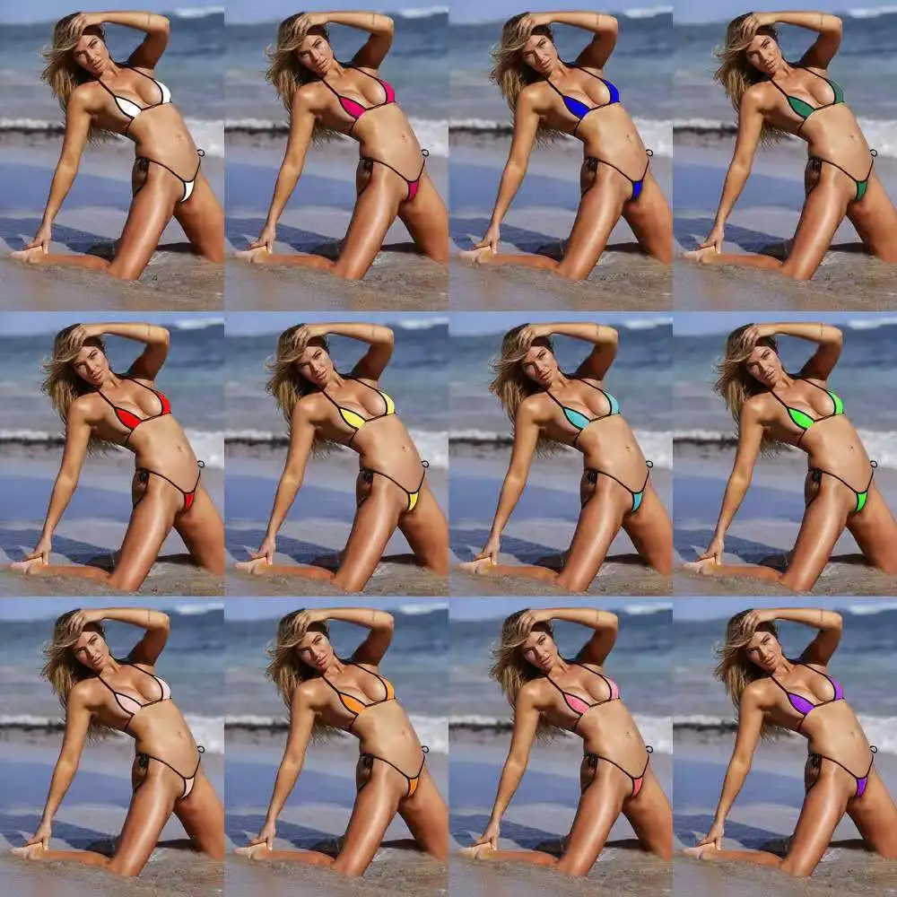 Купальник бикини с тремя точками на бретельках, сексуальный сплошной цвет, без косточек, без стальных