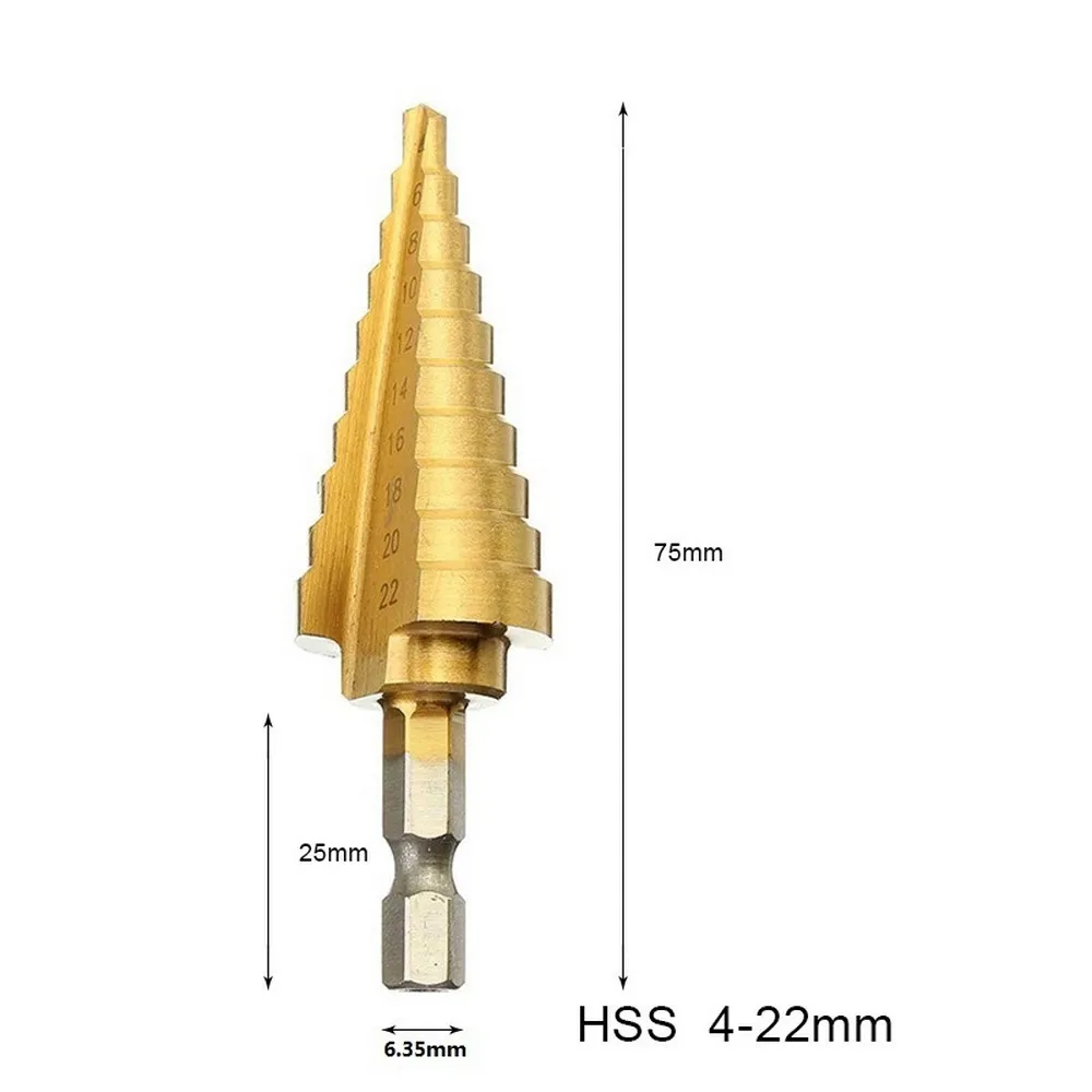 Сверло-конус из стали, шестигранный инструмент для сверления конической формы 4-22 мм с титановым покрытием