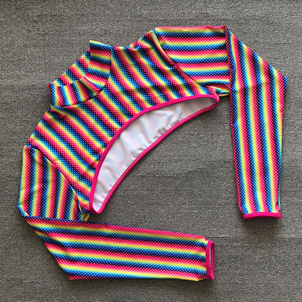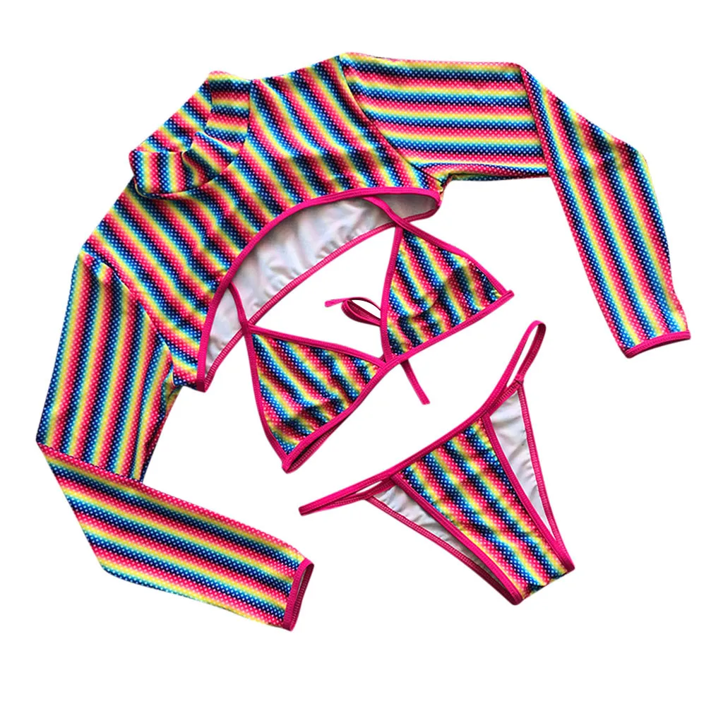 Для женщин из 3 предметов в радужную полоску градиентной радужной расцветки с длинными рукавами и принтом купальник