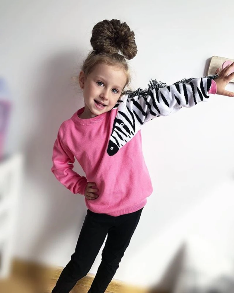 Хлопковая футболка с длинными рукавами и рисунком зебры для маленьких девочек; Топ; Одежда